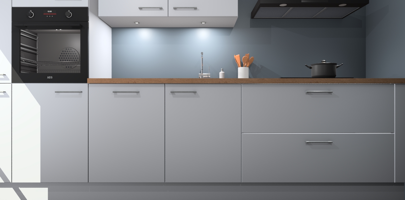 Inclusief plinten, stelpoten en werkblad
