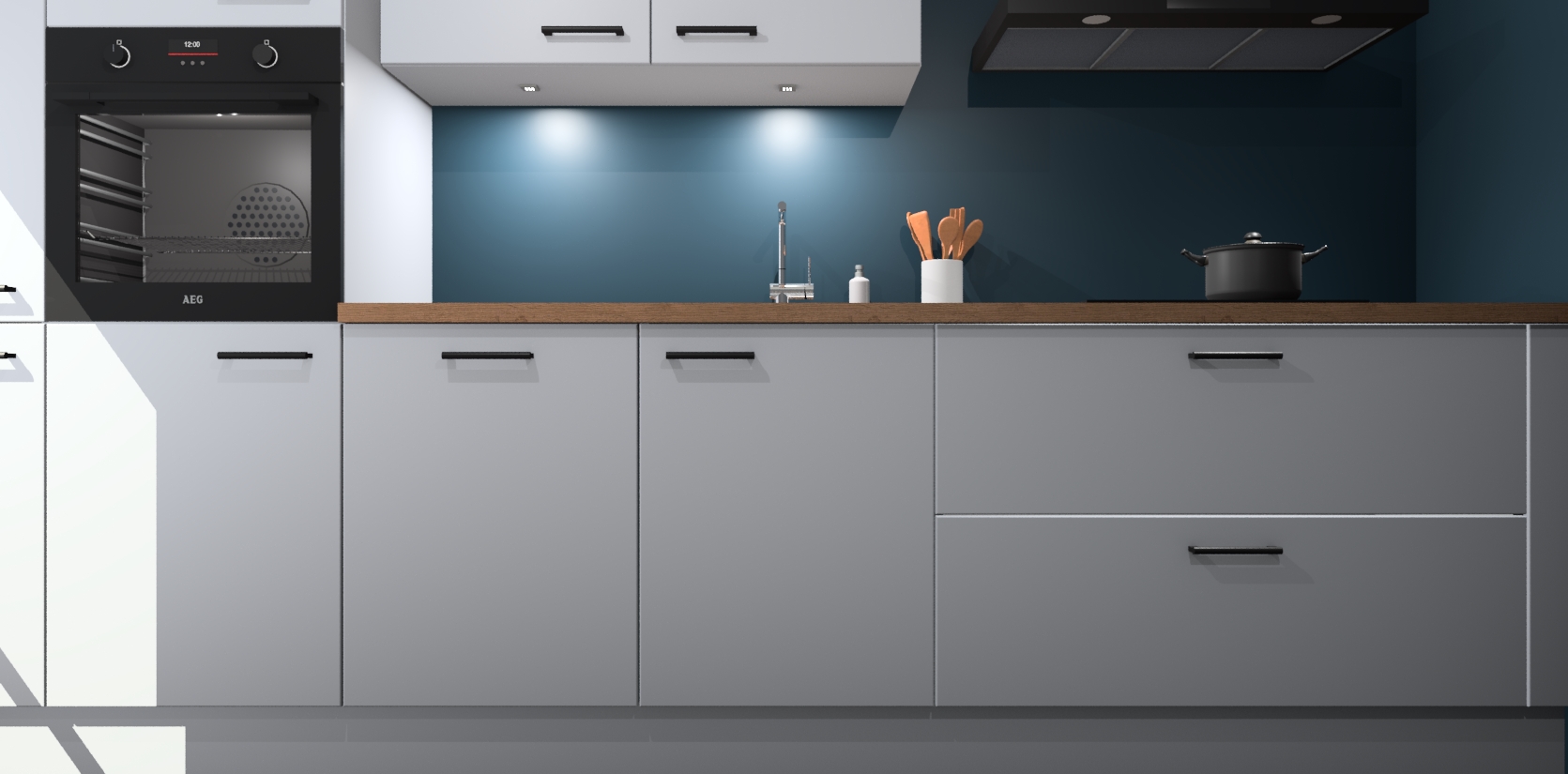 Inclusief plinten, stelpoten en werkblad