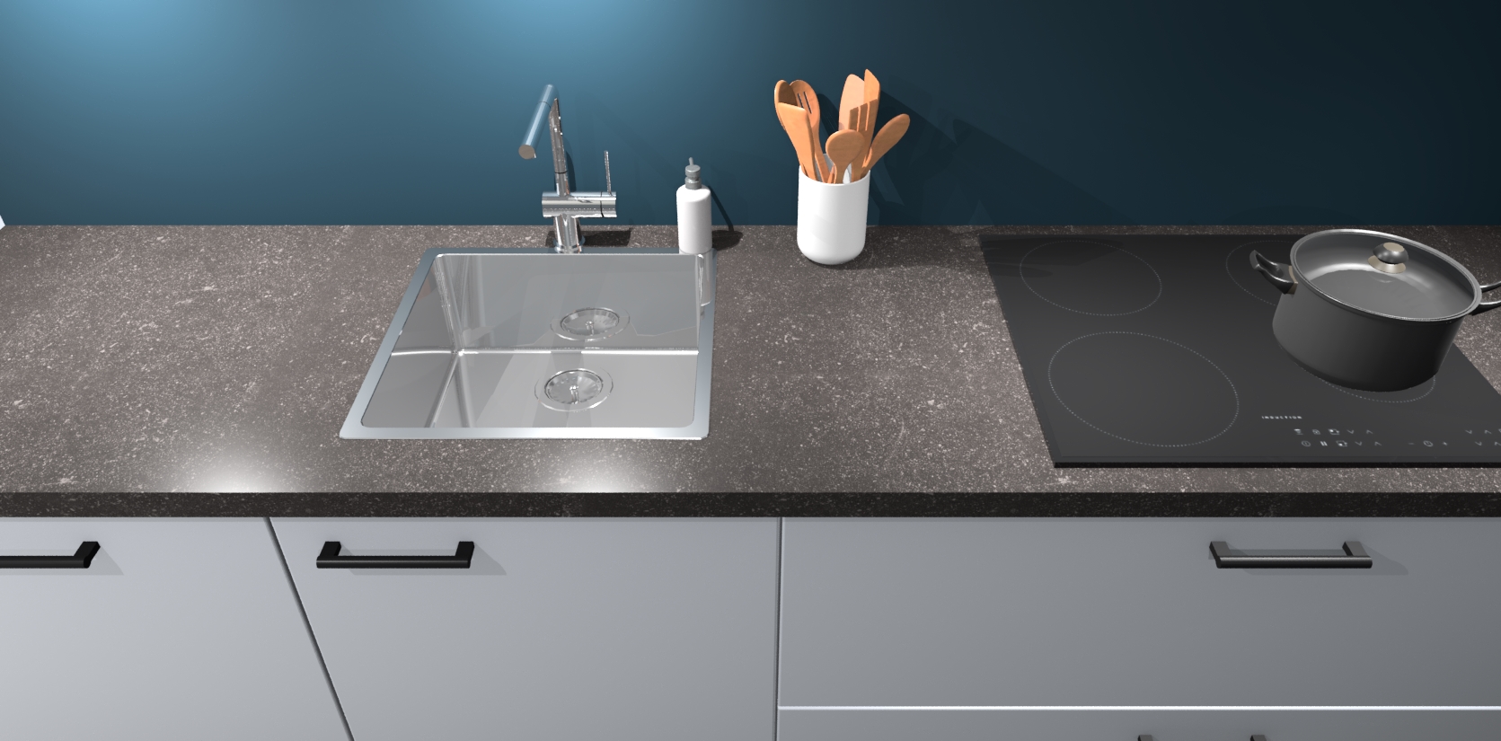 - Uitsparing van kookplaat, spoelbak en kraan dient u zelf te verzorgen.