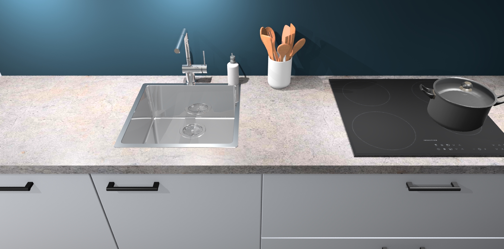 - Uitsparing van kookplaat, spoelbak en kraan dient u zelf te verzorgen.