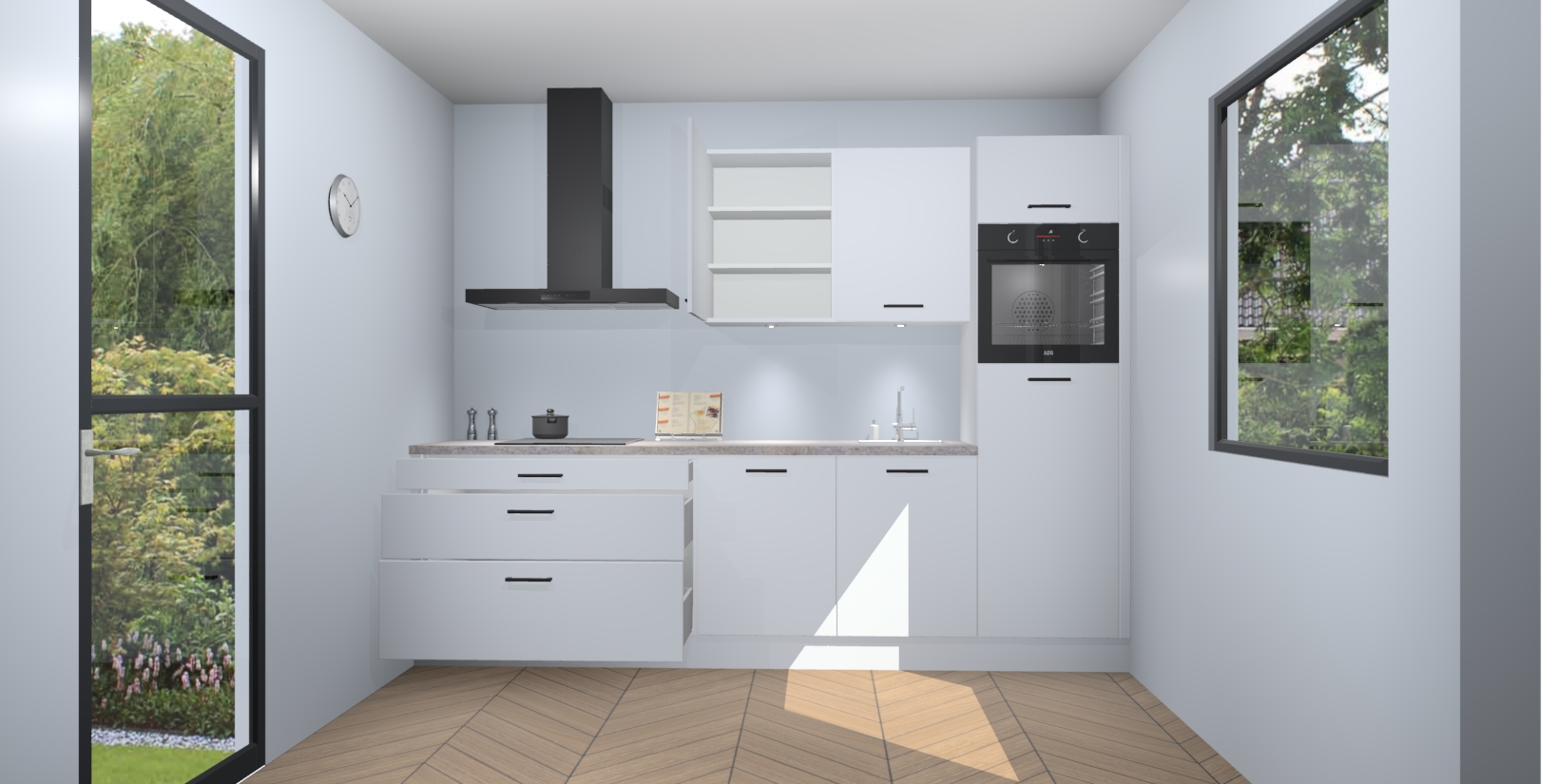 Inclusief plinten, stelpoten en werkblad