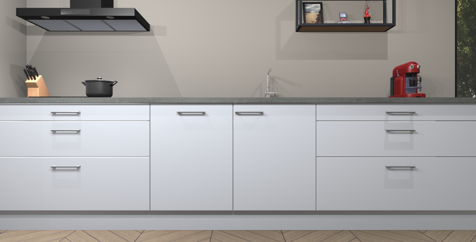 De softclose deuren openen en sluiten is ook heel eenvoudig - geniet van een moeiteloze keukenervaring, zelfs als er kinderen rondlopen. Voor extra gemak bij het plaatsen van uw bestelling bieden we ook een upgrade naar een kookplaat met geïntegreerde afzuiging.