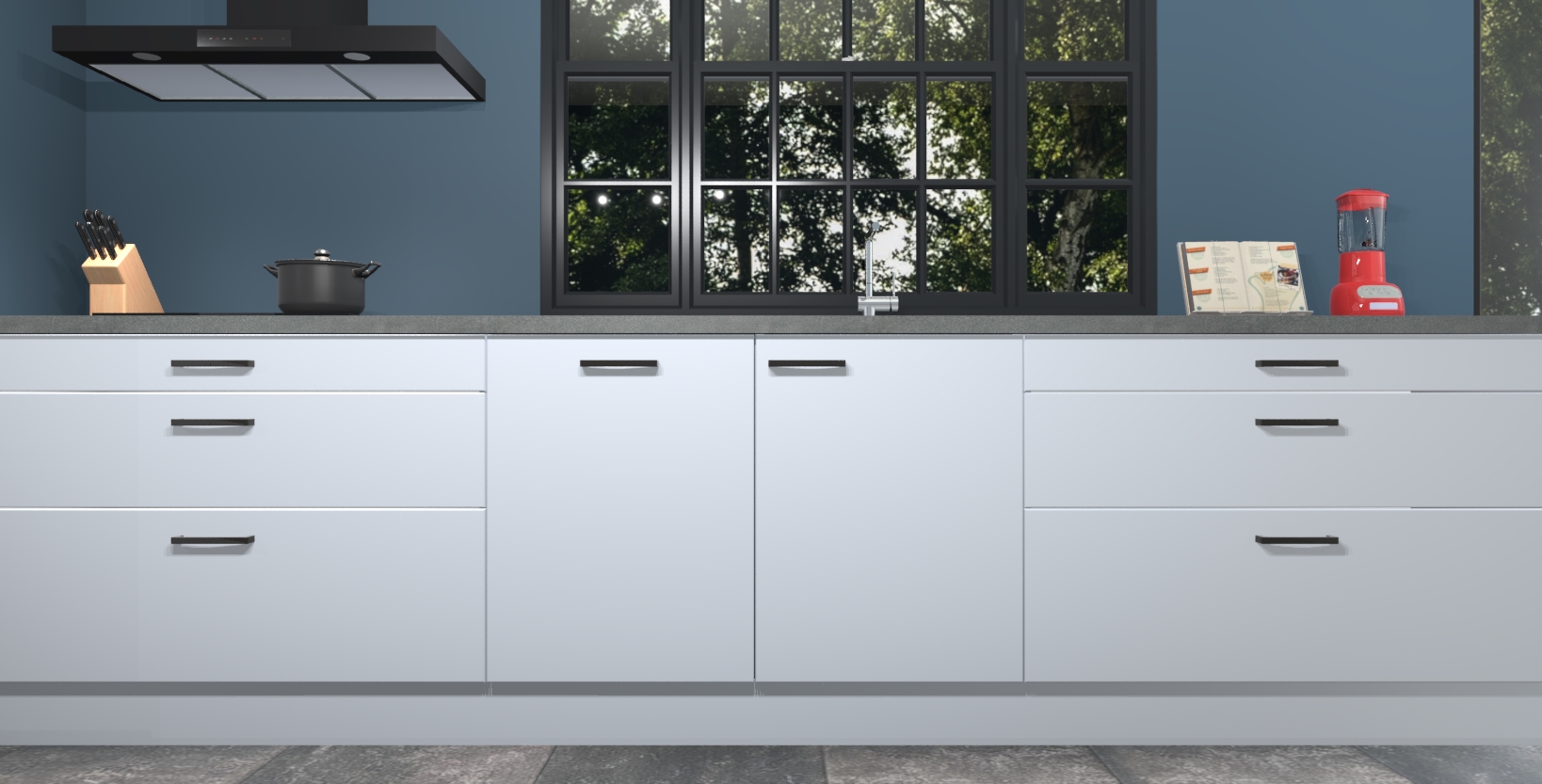 De softclose deuren openen en sluiten is ook heel eenvoudig - geniet van een moeiteloze keukenervaring, zelfs als er kinderen rondlopen. Voor extra gemak bij het plaatsen van uw bestelling bieden we ook een upgrade naar een kookplaat met geïntegreerde afzuiging.