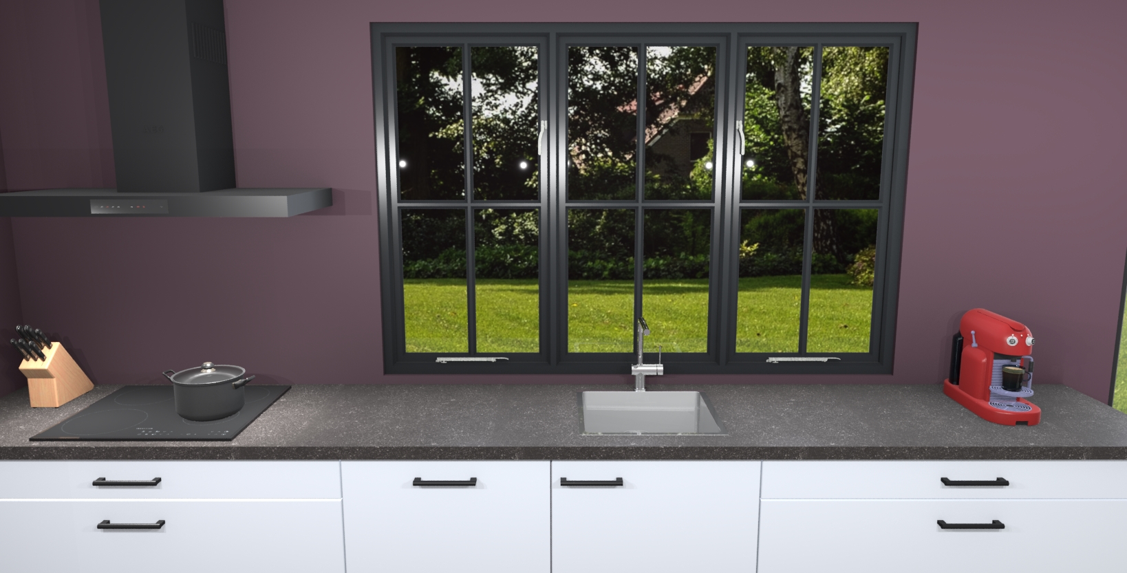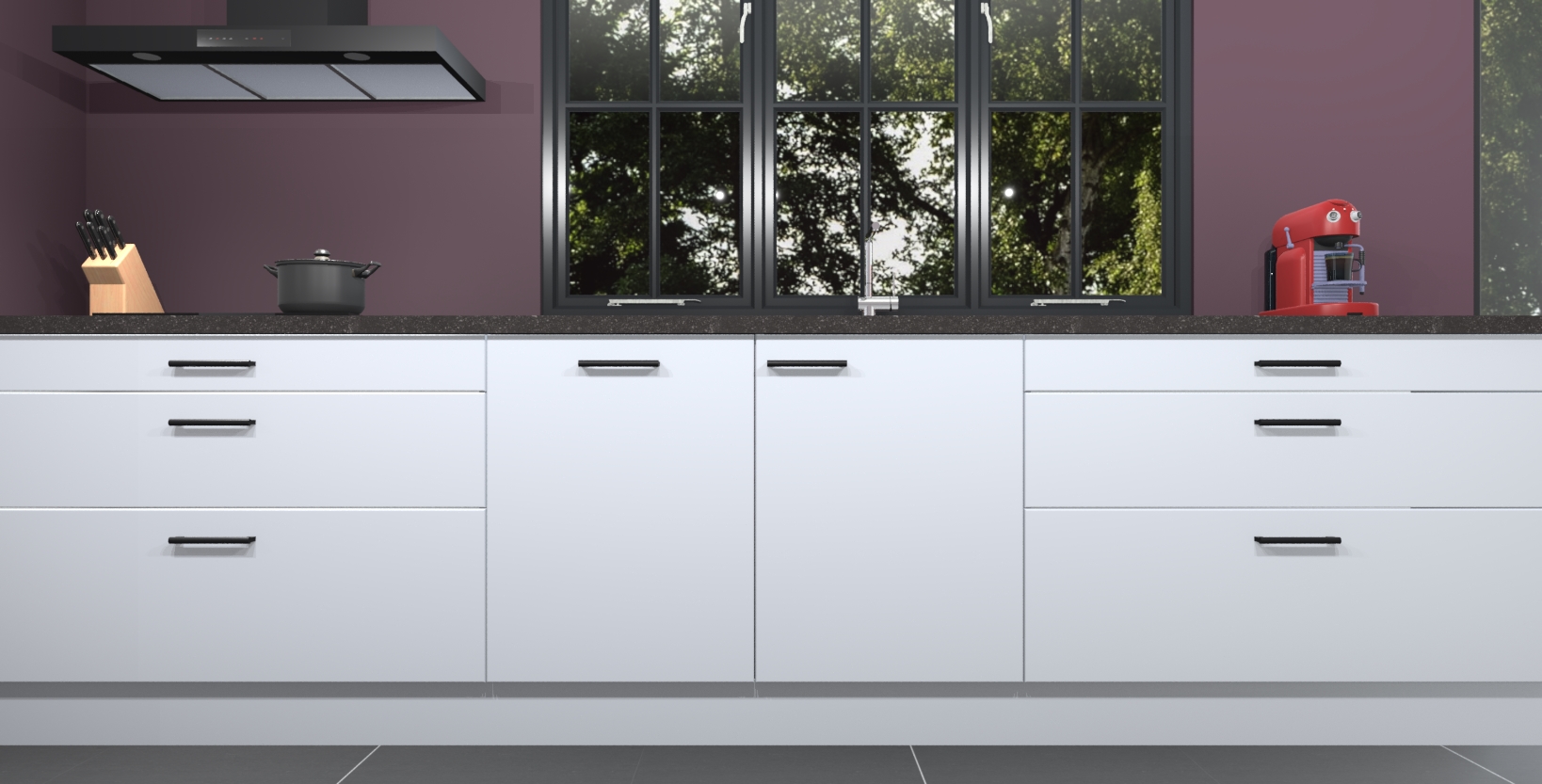 De softclose deuren openen en sluiten is ook heel eenvoudig - geniet van een moeiteloze keukenervaring, zelfs als er kinderen rondlopen. Voor extra gemak bij het plaatsen van uw bestelling bieden we ook een upgrade naar een kookplaat met geïntegreerde afzuiging.