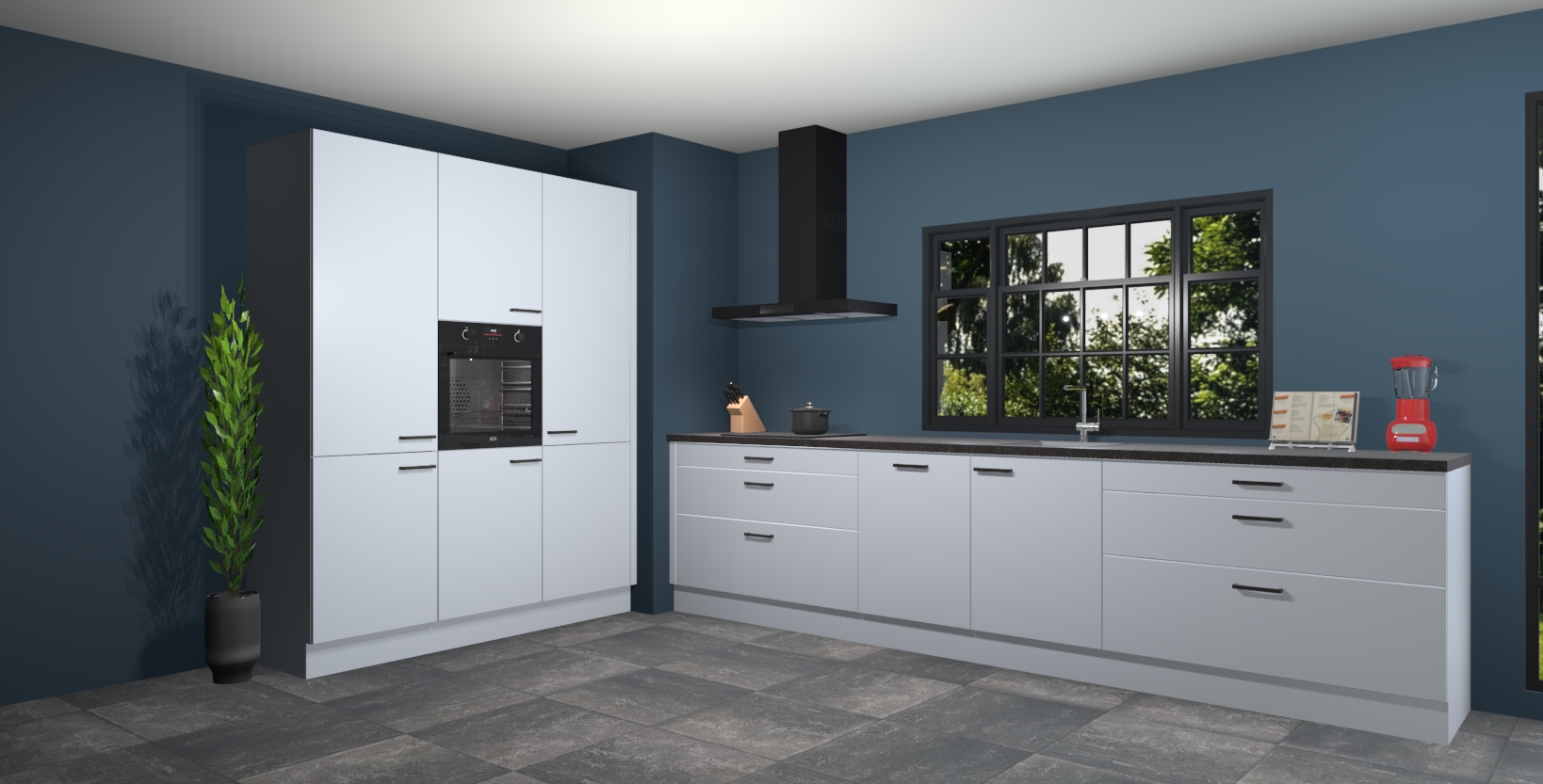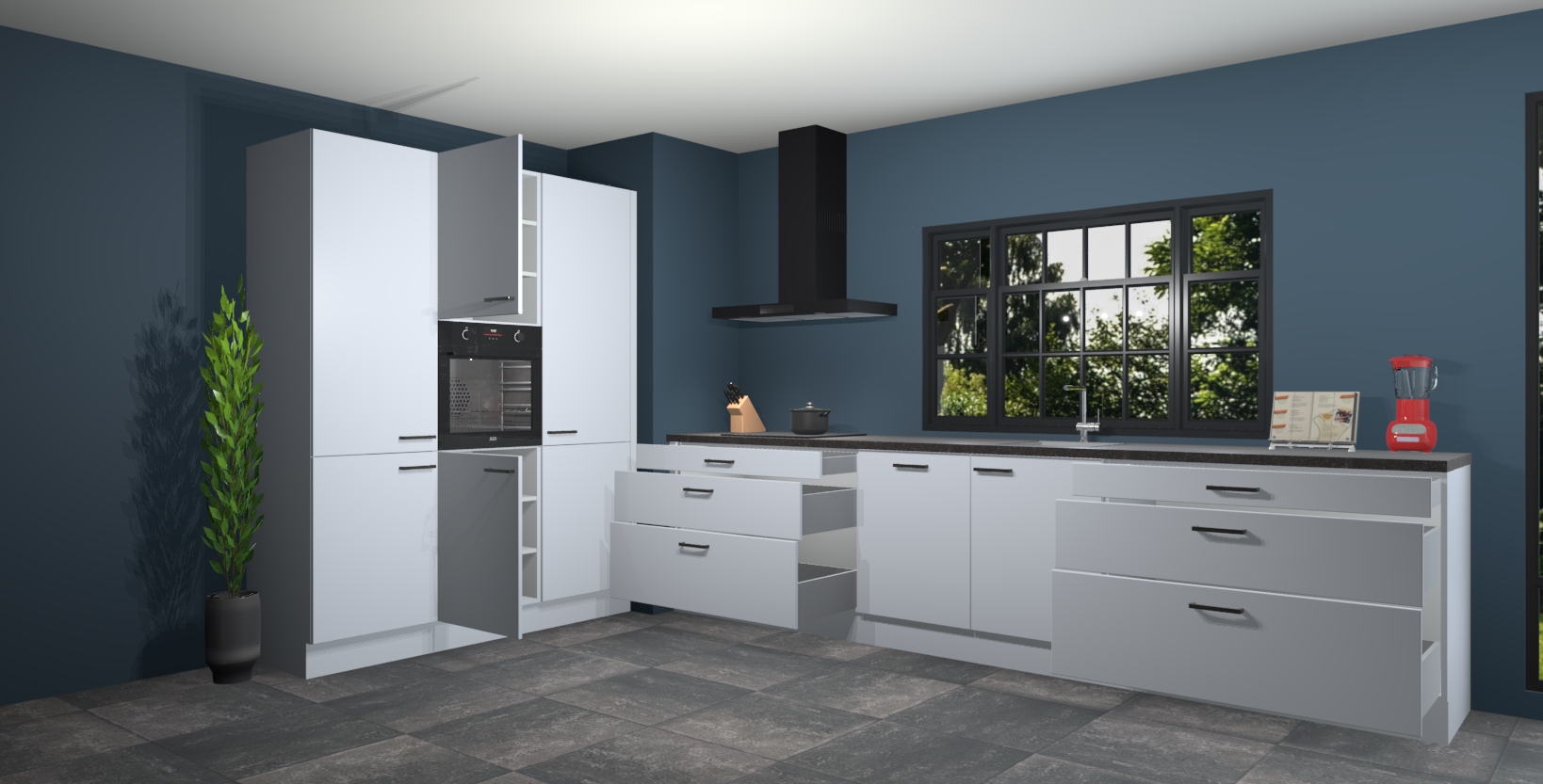 De softclose deuren openen en sluiten is ook heel eenvoudig - geniet van een moeiteloze keukenervaring, zelfs als er kinderen rondlopen. Voor extra gemak bij het plaatsen van uw bestelling bieden we ook een upgrade naar een kookplaat met geïntegreerde afzuiging.