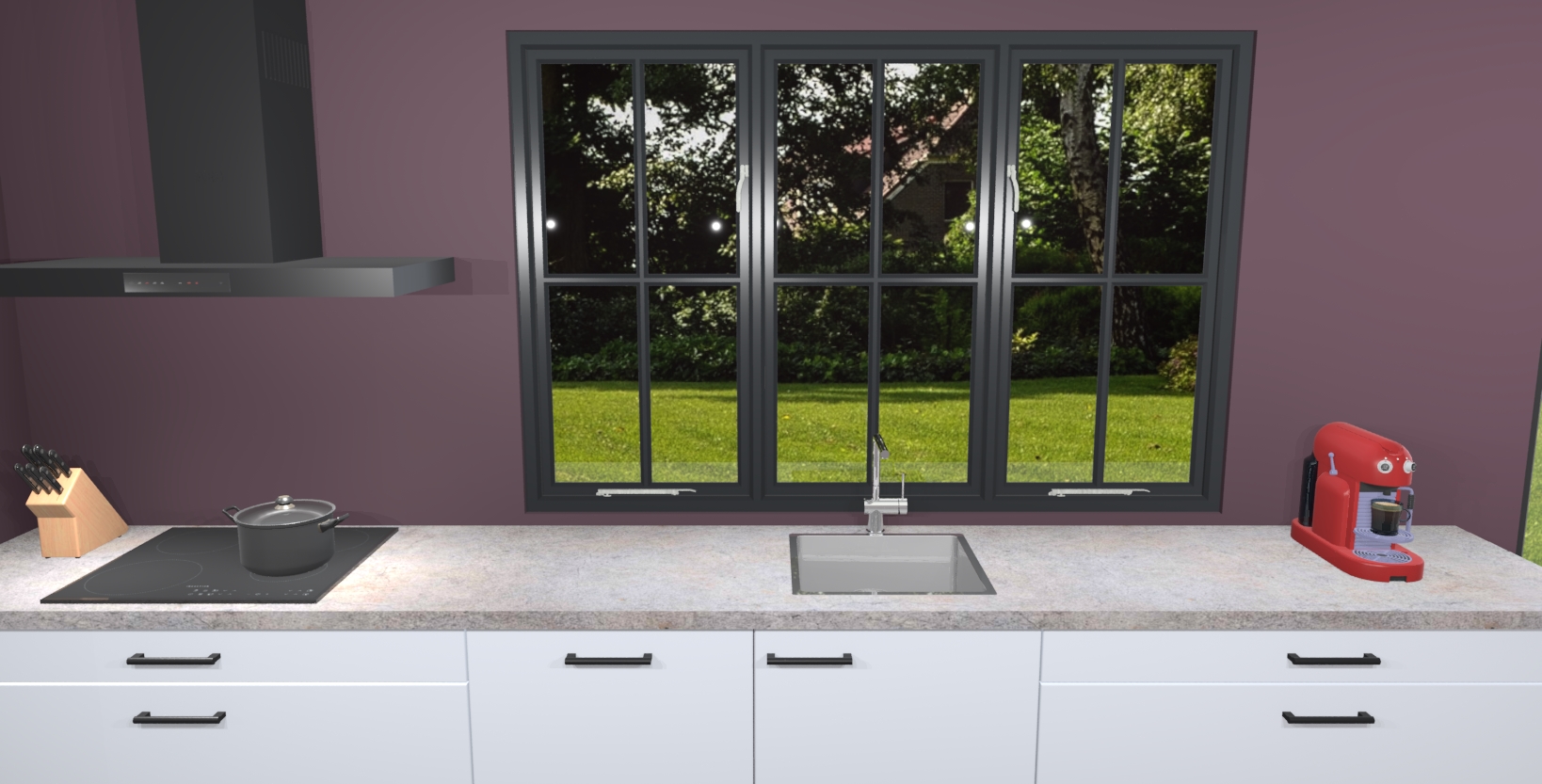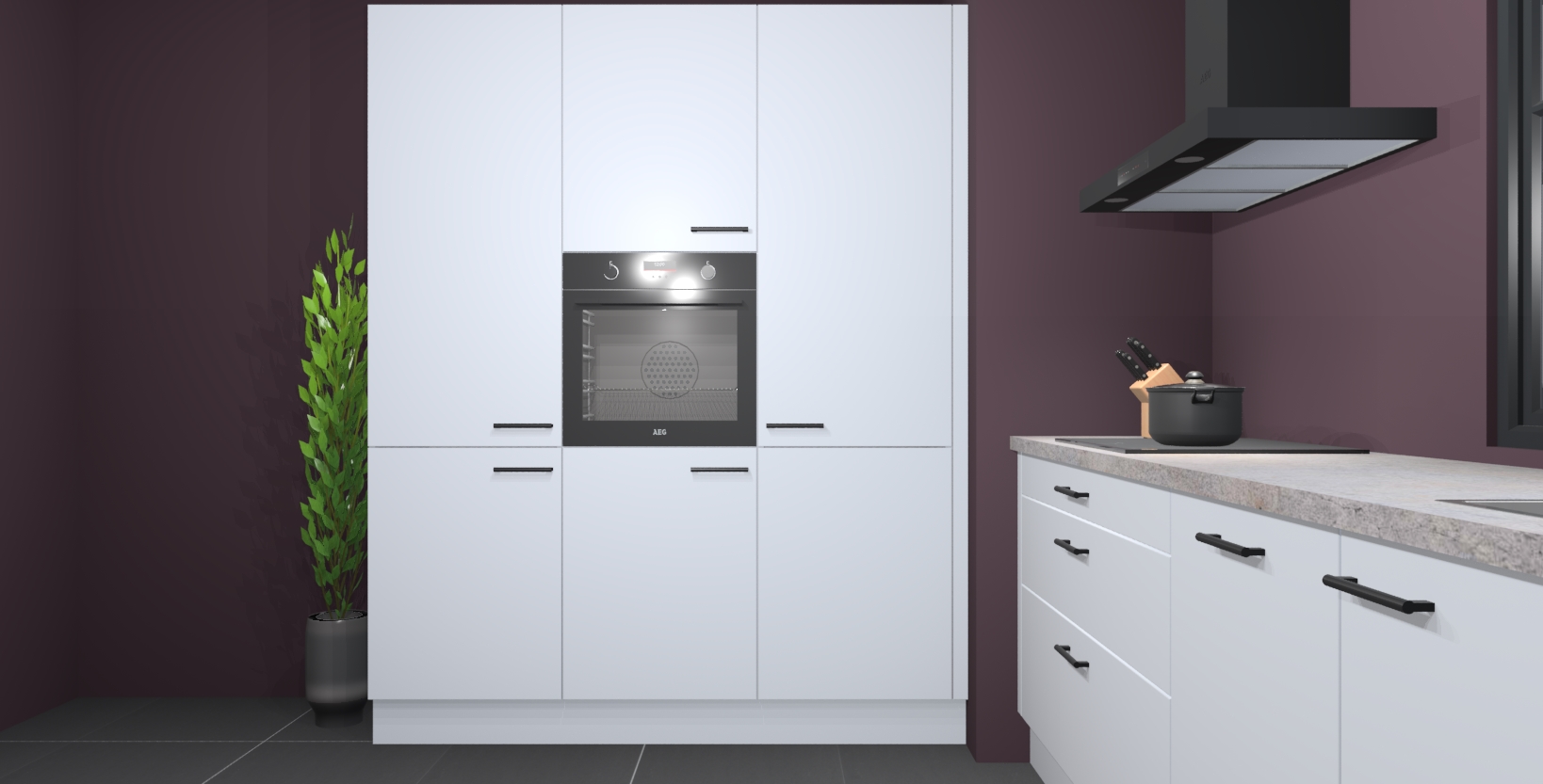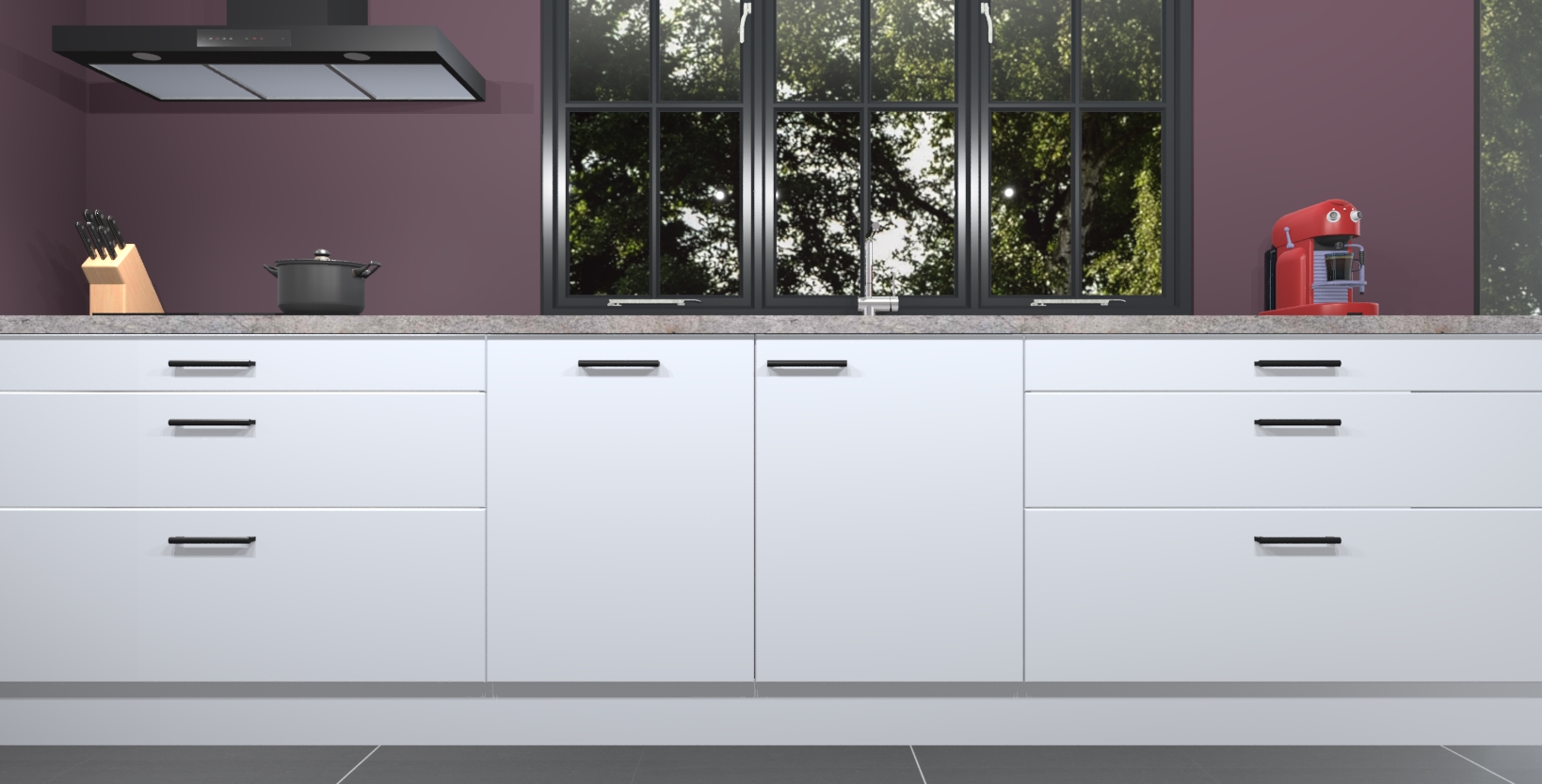 De softclose deuren openen en sluiten is ook heel eenvoudig - geniet van een moeiteloze keukenervaring, zelfs als er kinderen rondlopen. Voor extra gemak bij het plaatsen van uw bestelling bieden we ook een upgrade naar een kookplaat met geïntegreerde afzuiging.