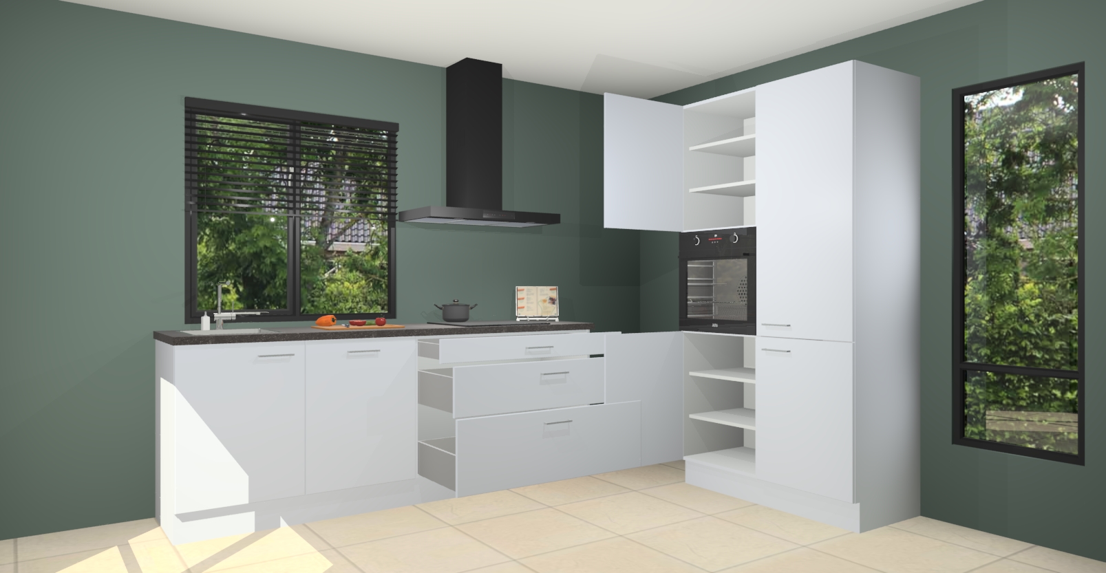 De setting is compleet gemaakt door de vijf inbouwapparaten: wanneer u gaat bestellen kunt u upgraden naar AEG-apparaten als oven, inductieplaat, afzuigkap, vaatwasser en koelkast. Kiest u voor onze Sneeuwwitte keuken Monaco, dan weet u zeker dat u te maken heeft met Duitse kwaliteit. Bovendien is er altijd sprake van een lage prijs en profiteren we aantrekkelijk leveringstermijn: die bedraagt slechts 7 weken ! Om het extra makkelijk te maken worden de keukenkasten reeds voorgemonteerd geleverd.