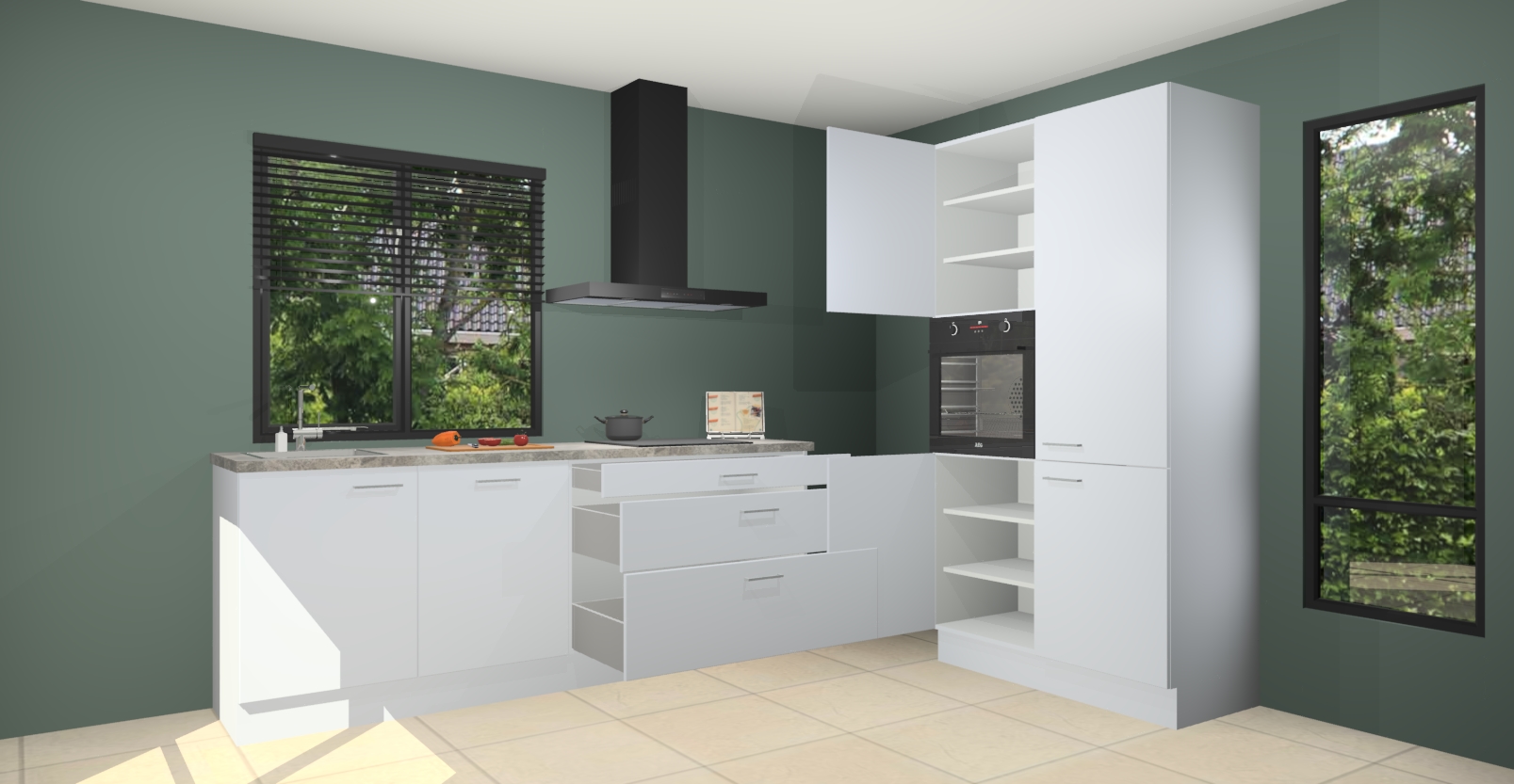 De setting is compleet gemaakt door de vijf inbouwapparaten: wanneer u gaat bestellen kunt u upgraden naar AEG-apparaten als oven, inductieplaat, afzuigkap, vaatwasser en koelkast. Kiest u voor onze Sneeuwwitte keuken Monaco, dan weet u zeker dat u te maken heeft met Duitse kwaliteit. Bovendien is er altijd sprake van een lage prijs en profiteren we aantrekkelijk leveringstermijn: die bedraagt slechts 7 weken ! Om het extra makkelijk te maken worden de keukenkasten reeds voorgemonteerd geleverd.