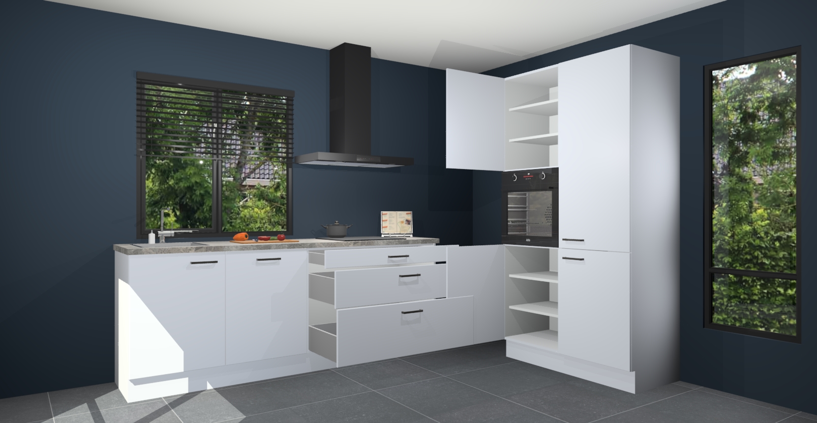 De setting is compleet gemaakt door de vijf inbouwapparaten: wanneer u gaat bestellen kunt u upgraden naar AEG-apparaten als oven, inductieplaat, afzuigkap, vaatwasser en koelkast. Kiest u voor onze Sneeuwwitte keuken Monaco, dan weet u zeker dat u te maken heeft met Duitse kwaliteit. Bovendien is er altijd sprake van een lage prijs en profiteren we aantrekkelijk leveringstermijn: die bedraagt slechts 7 weken ! Om het extra makkelijk te maken worden de keukenkasten reeds voorgemonteerd geleverd.