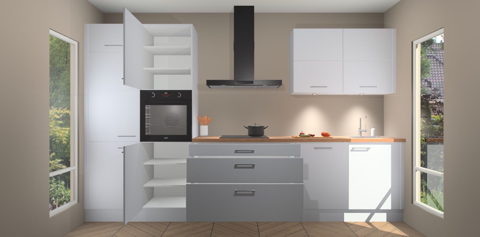 De glanzende afwerking van de deuren is gemaakt met behulp van geavanceerde coatingtechnologie, waardoor schoonmaken na het eten eenvoudig en efficiënt is. Bovendien zijn er geen handgrepen nodig, waardoor deze keuken zowel modern als verfijnd is. Of u nu op zoek bent naar een minimalistische toevoeging aan een hedendaags huis of naar iets stijlvollers en tijdlozers in een traditionele huiselijke omgeving, onze Sneeuwwitte Keuken Parijs is een geweldige oplossing.