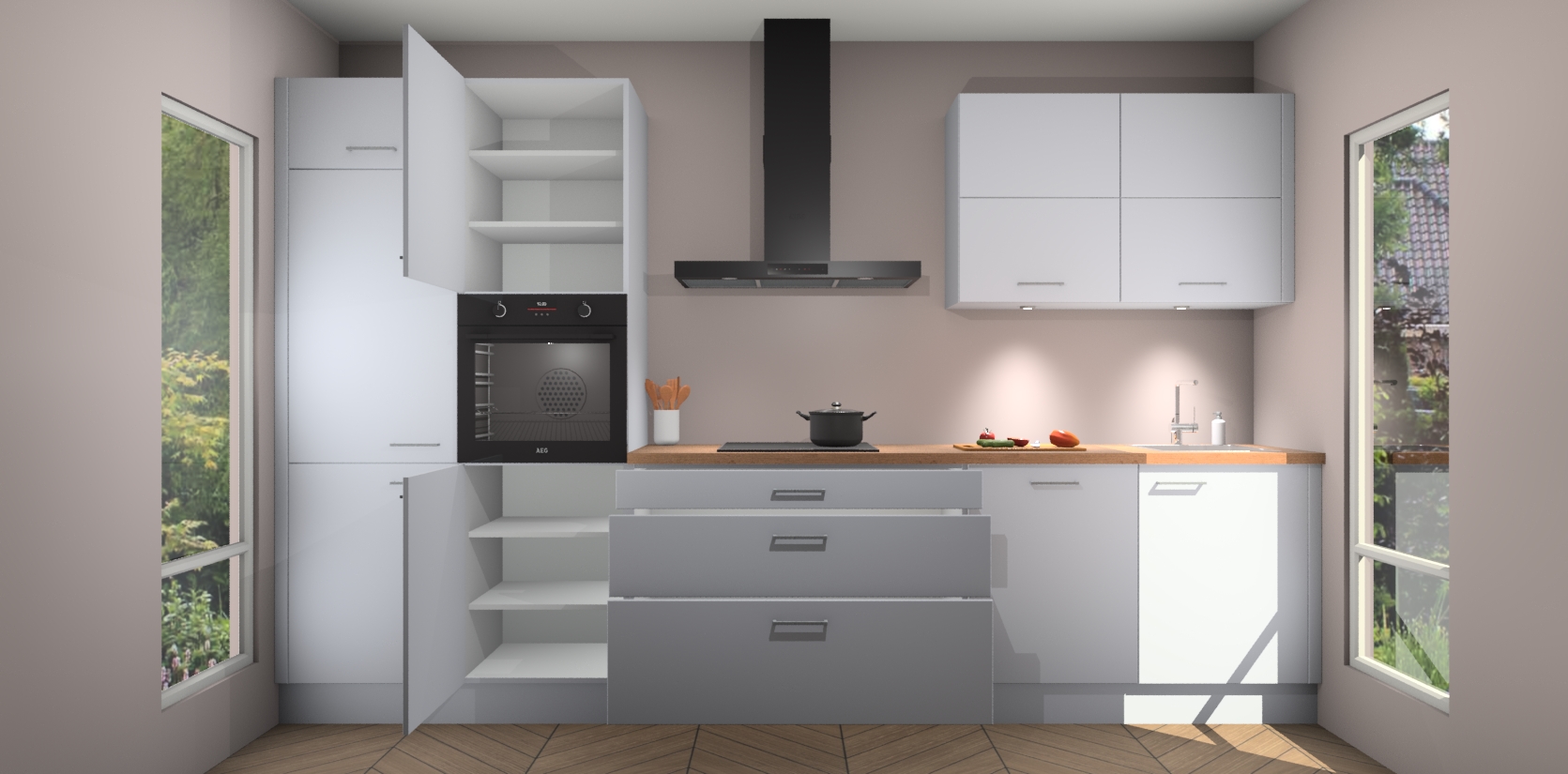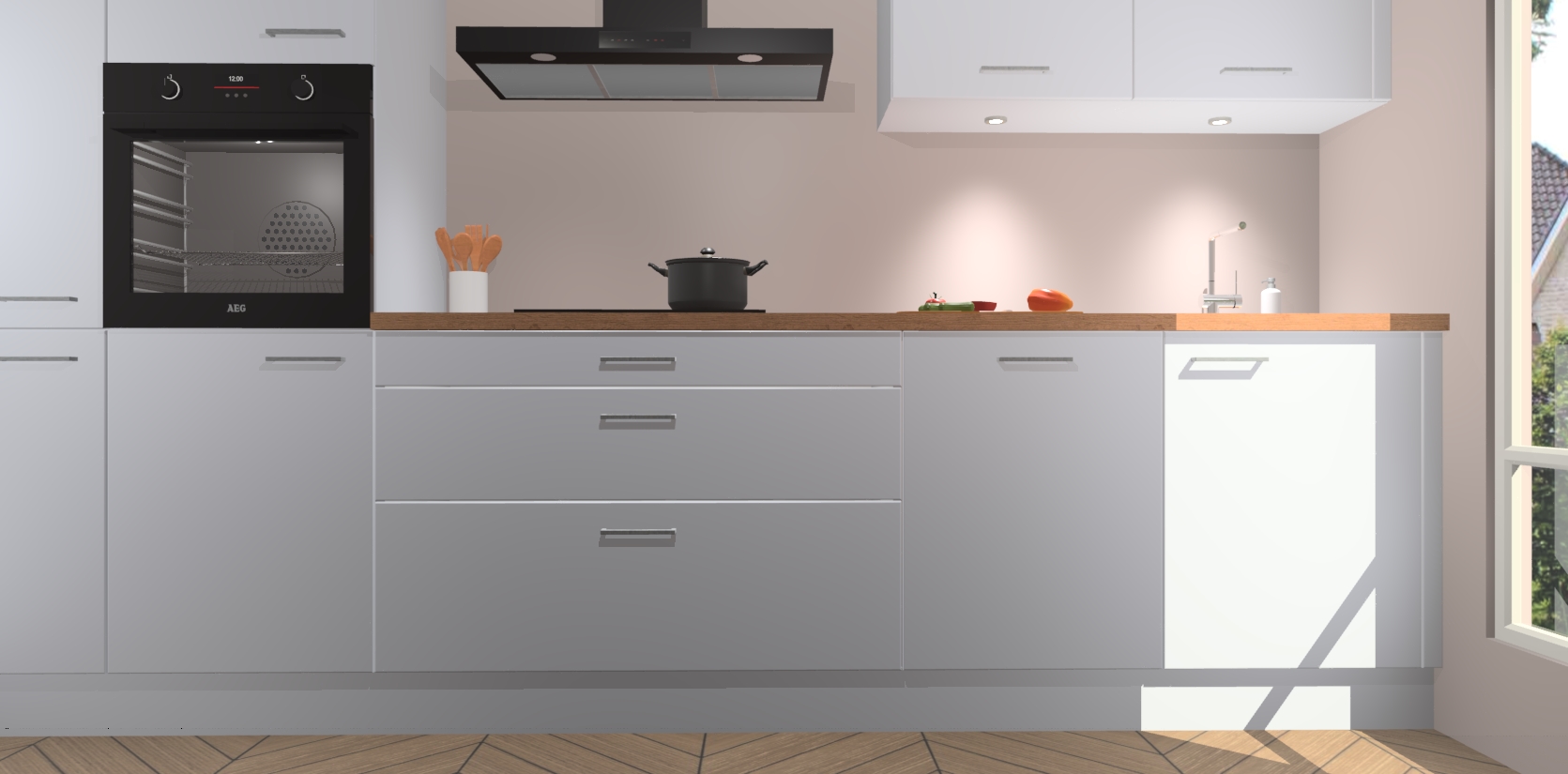 Inclusief plinten, stelpoten en werkblad