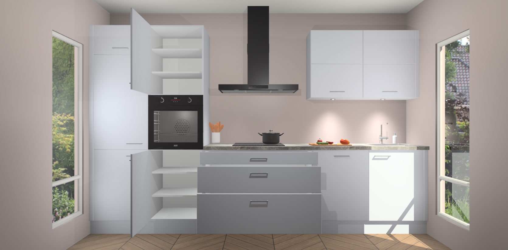 De glanzende afwerking van de deuren is gemaakt met behulp van geavanceerde coatingtechnologie, waardoor schoonmaken na het eten eenvoudig en efficiënt is. Bovendien zijn er geen handgrepen nodig, waardoor deze keuken zowel modern als verfijnd is. Of u nu op zoek bent naar een minimalistische toevoeging aan een hedendaags huis of naar iets stijlvollers en tijdlozers in een traditionele huiselijke omgeving, onze Sneeuwwitte Keuken Parijs is een geweldige oplossing.