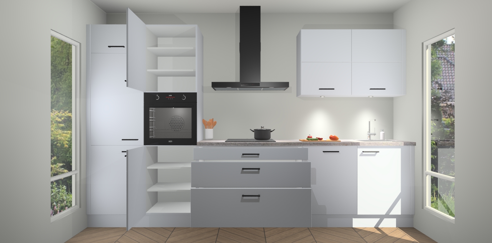 De glanzende afwerking van de deuren is gemaakt met behulp van geavanceerde coatingtechnologie, waardoor schoonmaken na het eten eenvoudig en efficiënt is. Bovendien zijn er geen handgrepen nodig, waardoor deze keuken zowel modern als verfijnd is. Of u nu op zoek bent naar een minimalistische toevoeging aan een hedendaags huis of naar iets stijlvollers en tijdlozers in een traditionele huiselijke omgeving, onze Sneeuwwitte Keuken Parijs is een geweldige oplossing.