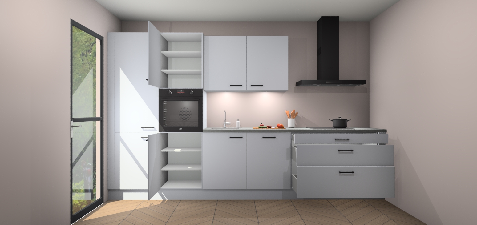 In deze box zijn alle kleuren verzameld van de deuren en werkbladen. Vraag de gratis kleurenbox aan en kijk thuis rustig verder!
