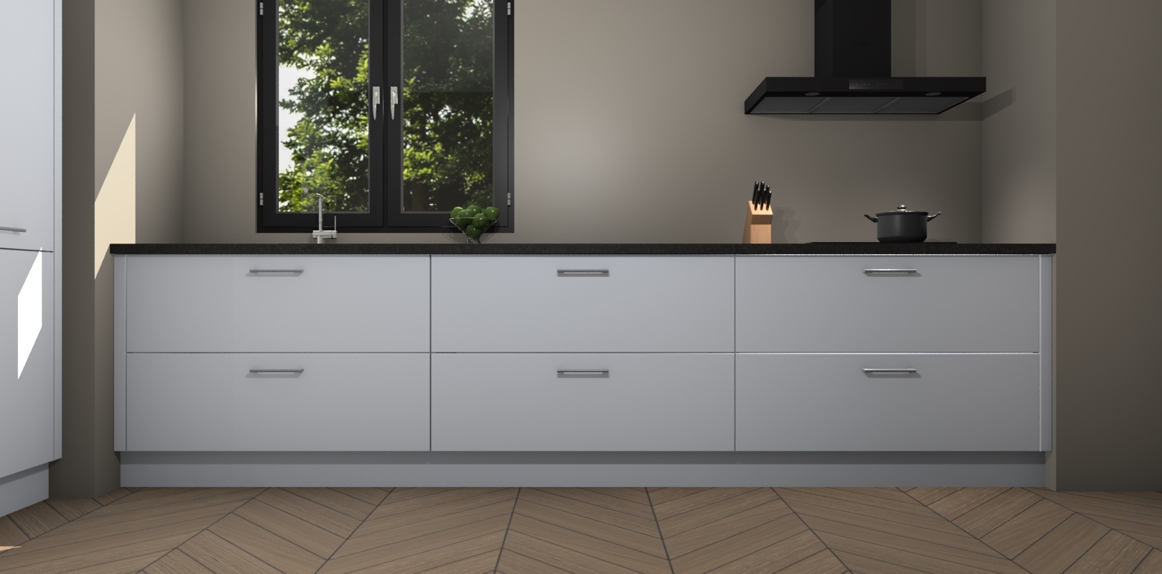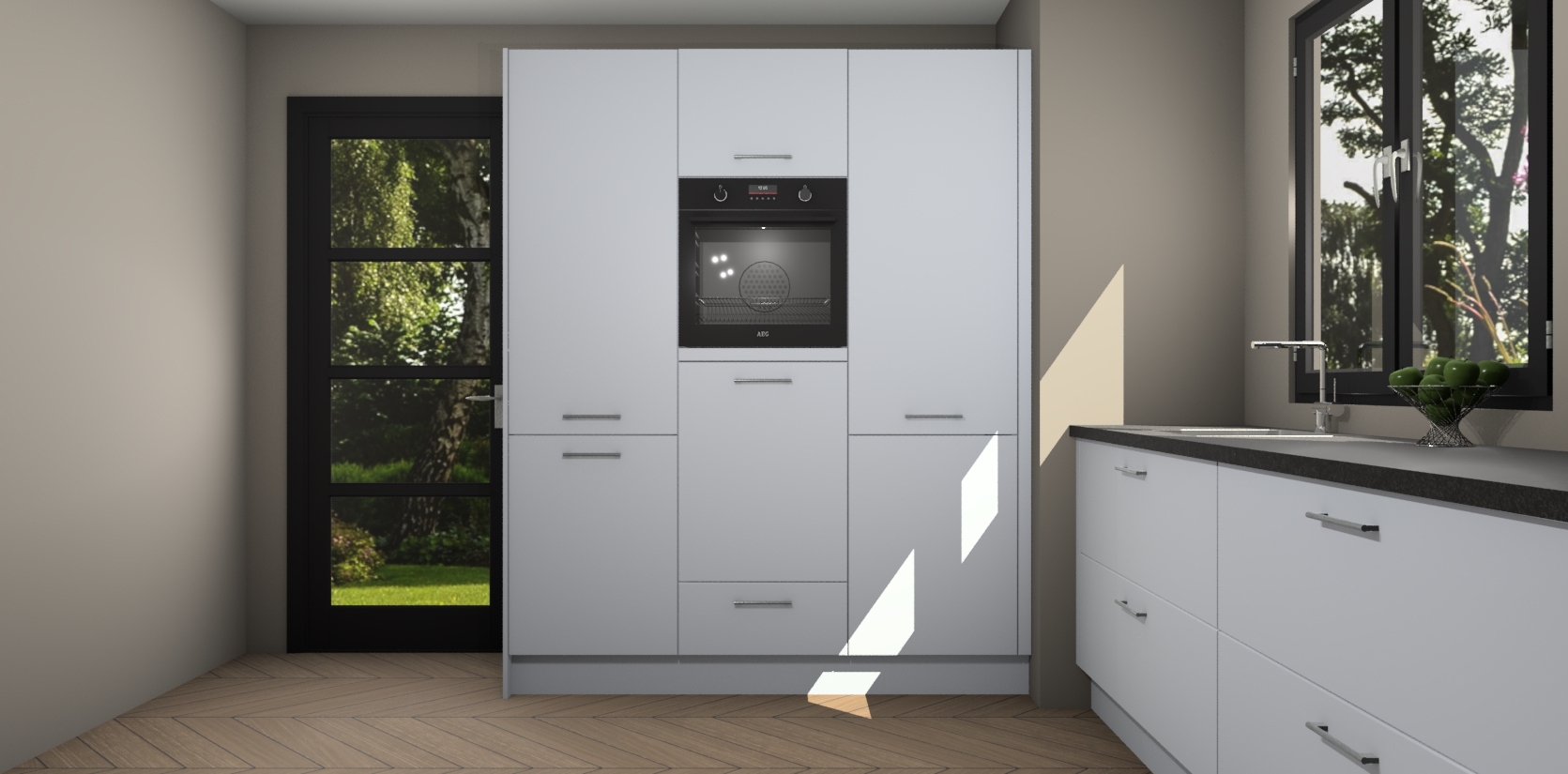 De softclose deuren openen en sluiten is ook heel eenvoudig - geniet van een moeiteloze keukenervaring, zelfs als er kinderen rondlopen. Voor extra gemak bij het plaatsen van uw bestelling bieden we ook een upgrade naar een kookplaat met geïntegreerde afzuiging.