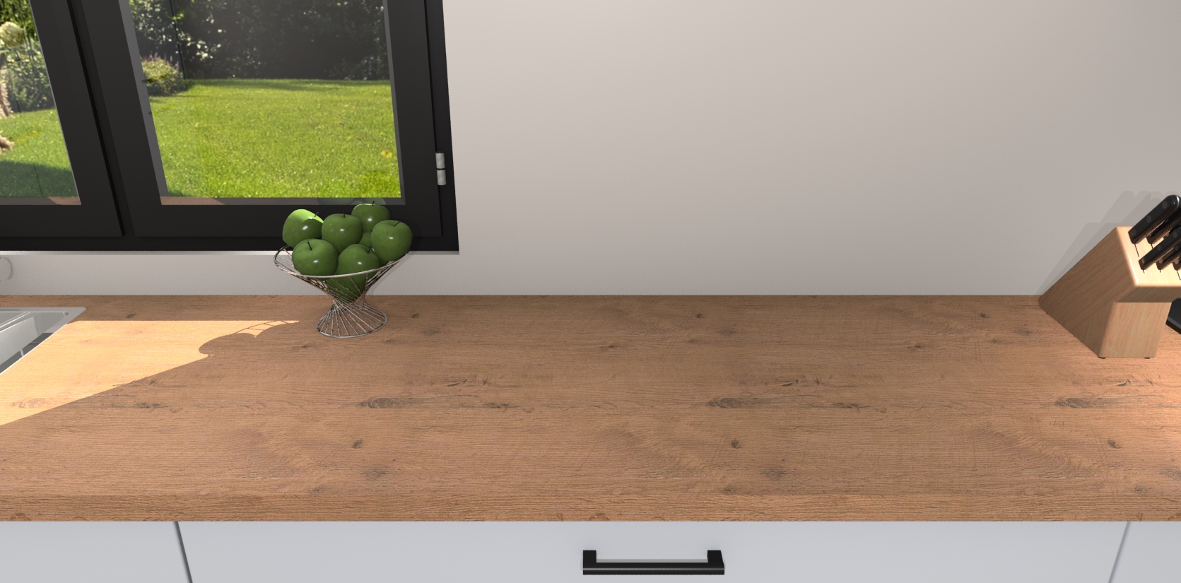 - Bij een hoekwerkblad zijn de hoeken in gevreesd en op maat gemaakt