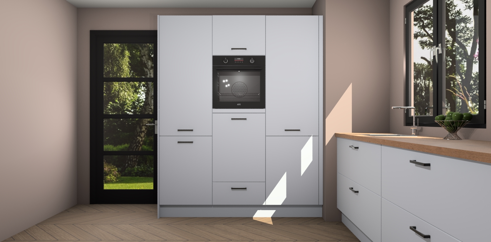 De softclose deuren openen en sluiten is ook heel eenvoudig - geniet van een moeiteloze keukenervaring, zelfs als er kinderen rondlopen. Voor extra gemak bij het plaatsen van uw bestelling bieden we ook een upgrade naar een kookplaat met geïntegreerde afzuiging.