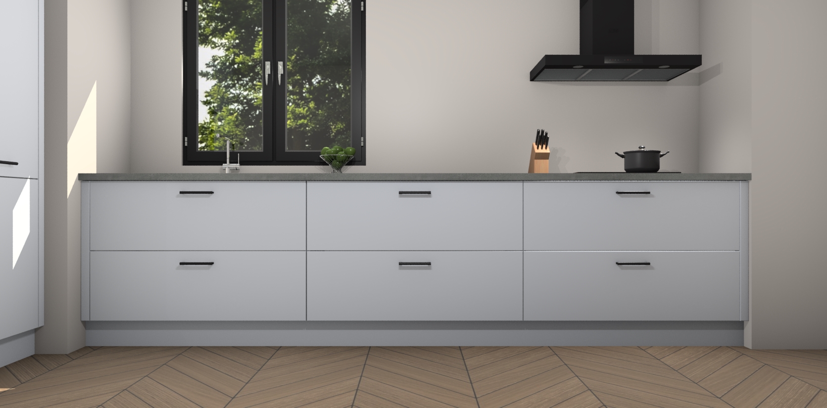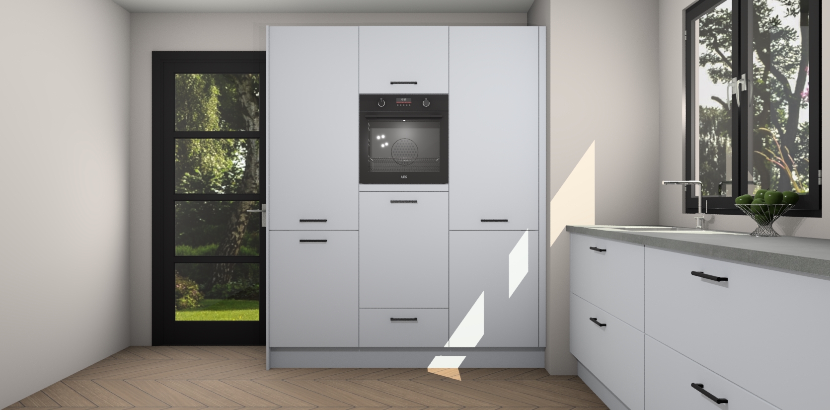 De softclose deuren openen en sluiten is ook heel eenvoudig - geniet van een moeiteloze keukenervaring, zelfs als er kinderen rondlopen. Voor extra gemak bij het plaatsen van uw bestelling bieden we ook een upgrade naar een kookplaat met geïntegreerde afzuiging.