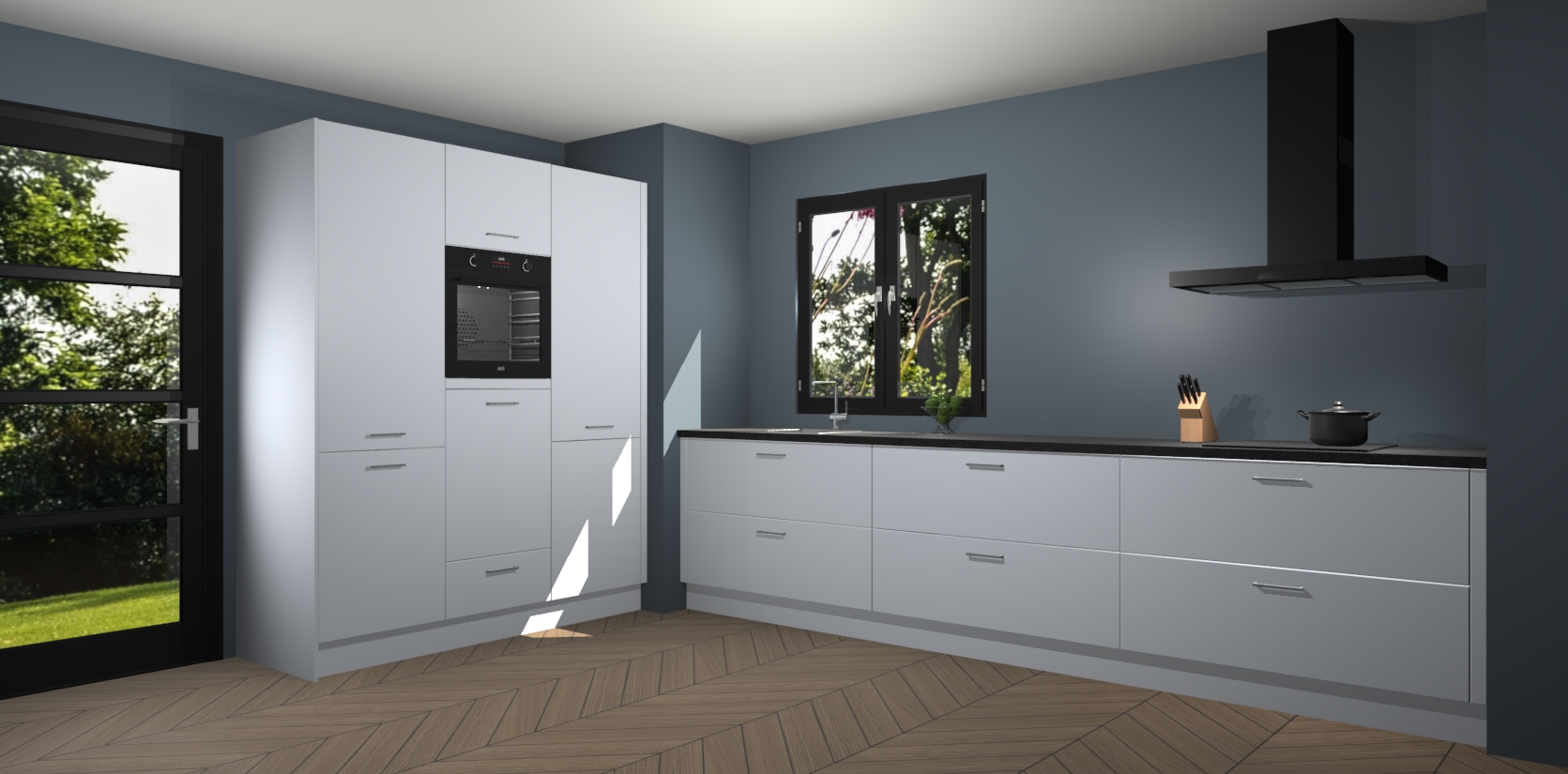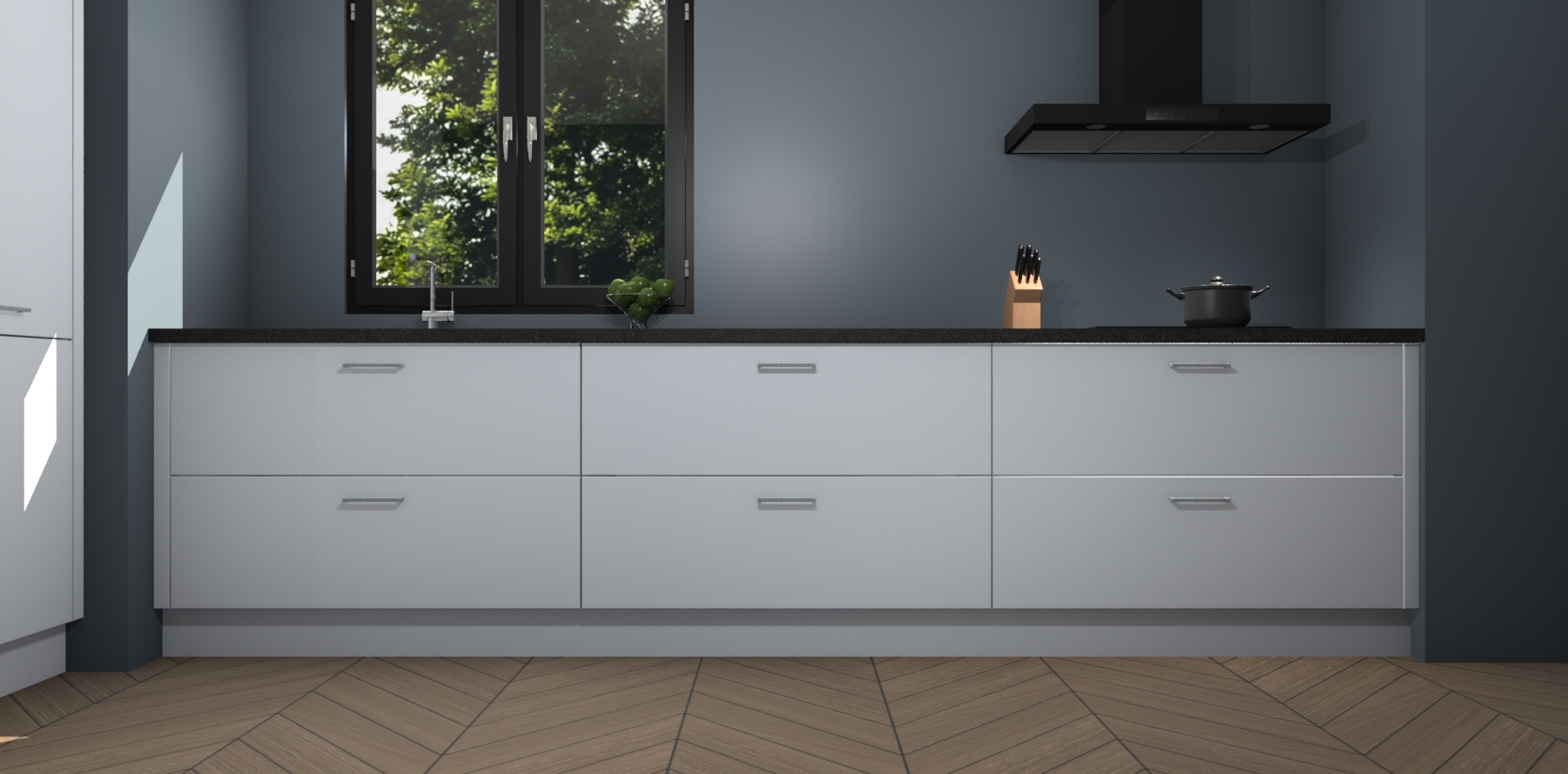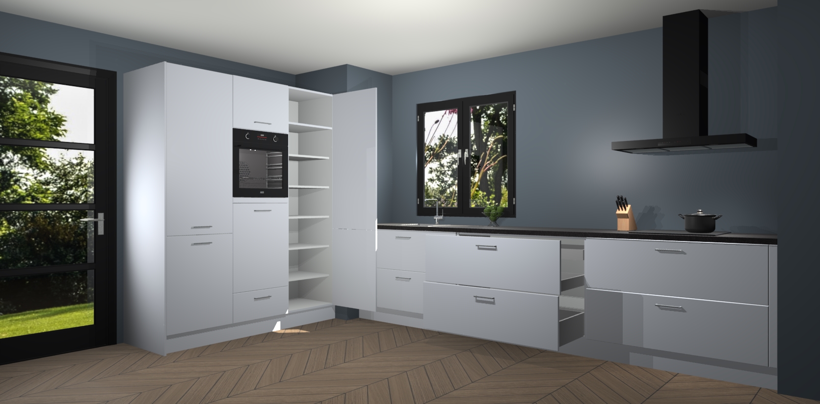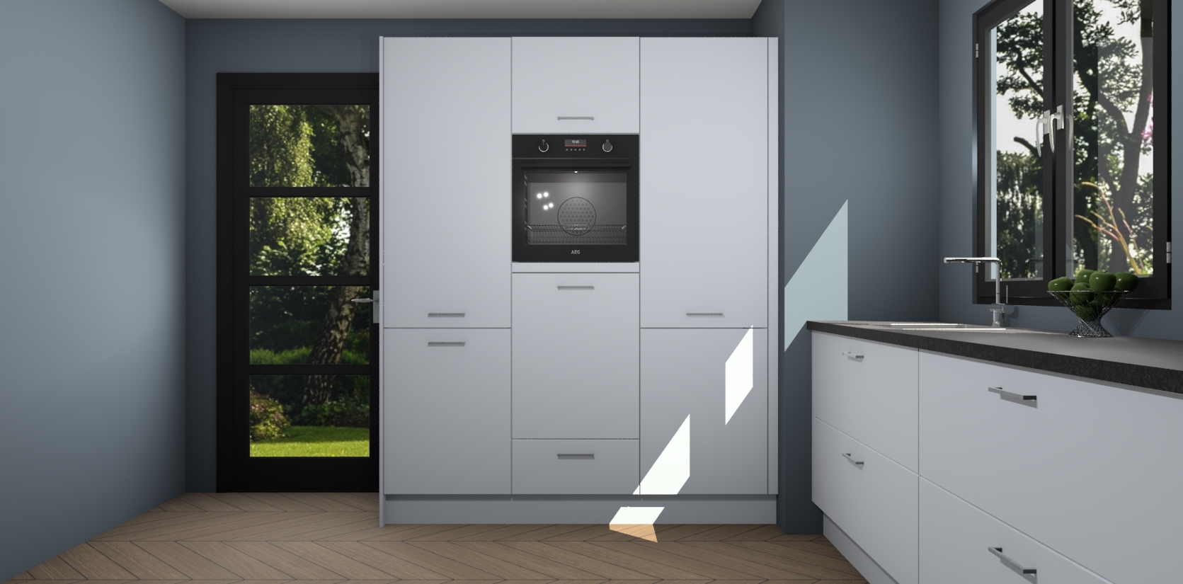De softclose deuren openen en sluiten is ook heel eenvoudig - geniet van een moeiteloze keukenervaring, zelfs als er kinderen rondlopen. Voor extra gemak bij het plaatsen van uw bestelling bieden we ook een upgrade naar een kookplaat met geïntegreerde afzuiging.