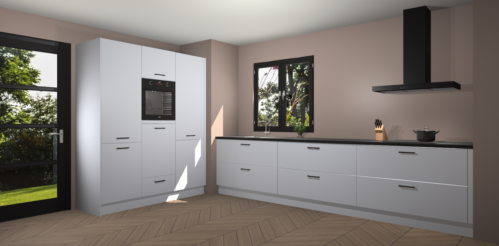 De softclose deuren openen en sluiten is ook heel eenvoudig - geniet van een moeiteloze keukenervaring, zelfs als er kinderen rondlopen. Voor extra gemak bij het plaatsen van uw bestelling bieden we ook een upgrade naar een kookplaat met geïntegreerde afzuiging.