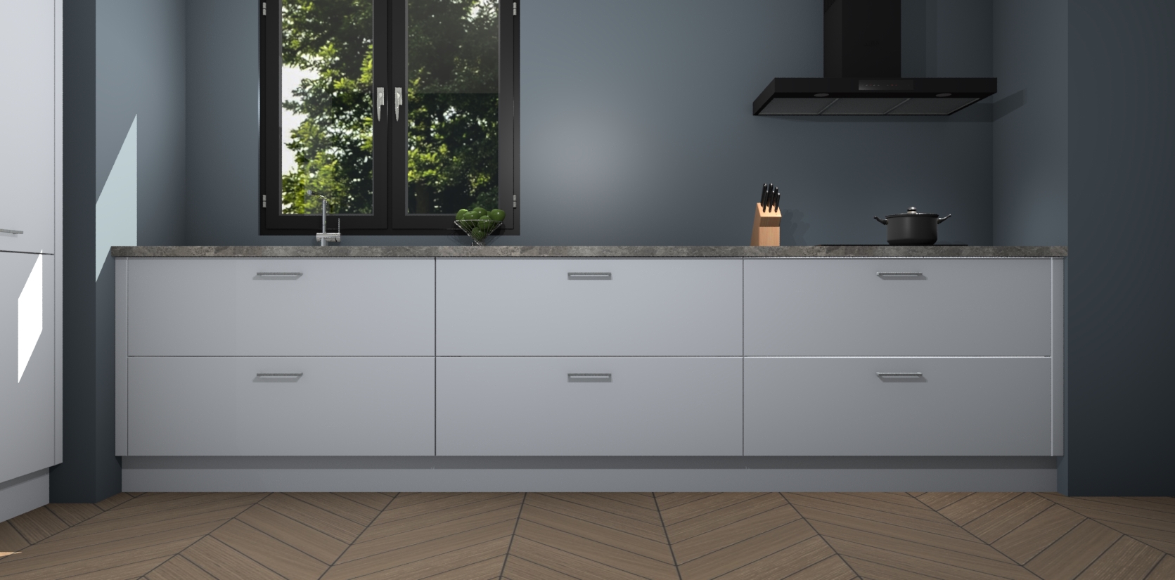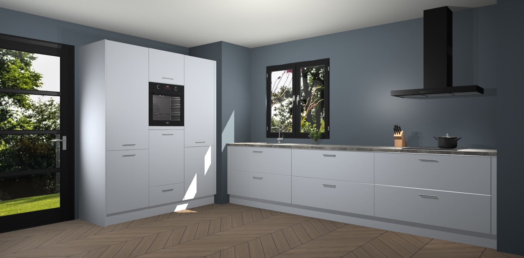 De softclose deuren openen en sluiten is ook heel eenvoudig - geniet van een moeiteloze keukenervaring, zelfs als er kinderen rondlopen. Voor extra gemak bij het plaatsen van uw bestelling bieden we ook een upgrade naar een kookplaat met geïntegreerde afzuiging.