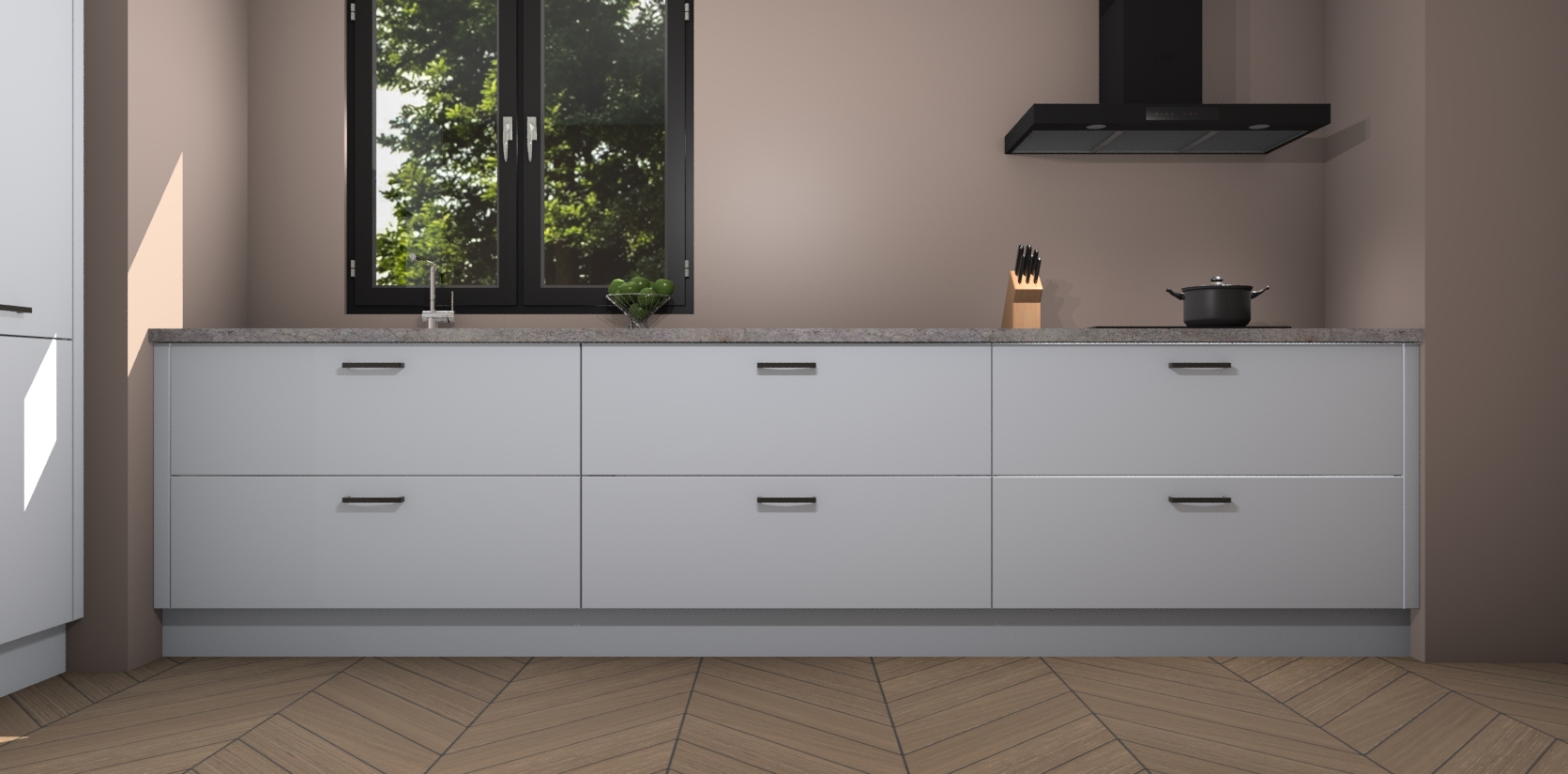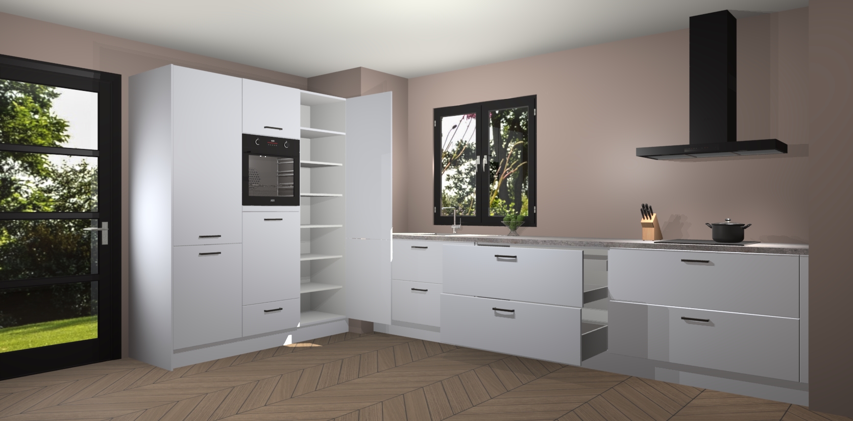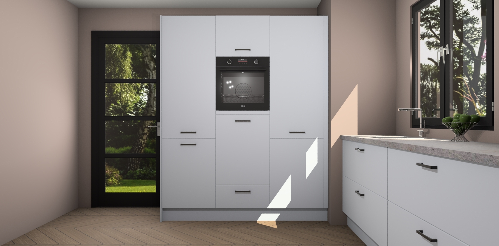 De softclose deuren openen en sluiten is ook heel eenvoudig - geniet van een moeiteloze keukenervaring, zelfs als er kinderen rondlopen. Voor extra gemak bij het plaatsen van uw bestelling bieden we ook een upgrade naar een kookplaat met geïntegreerde afzuiging.