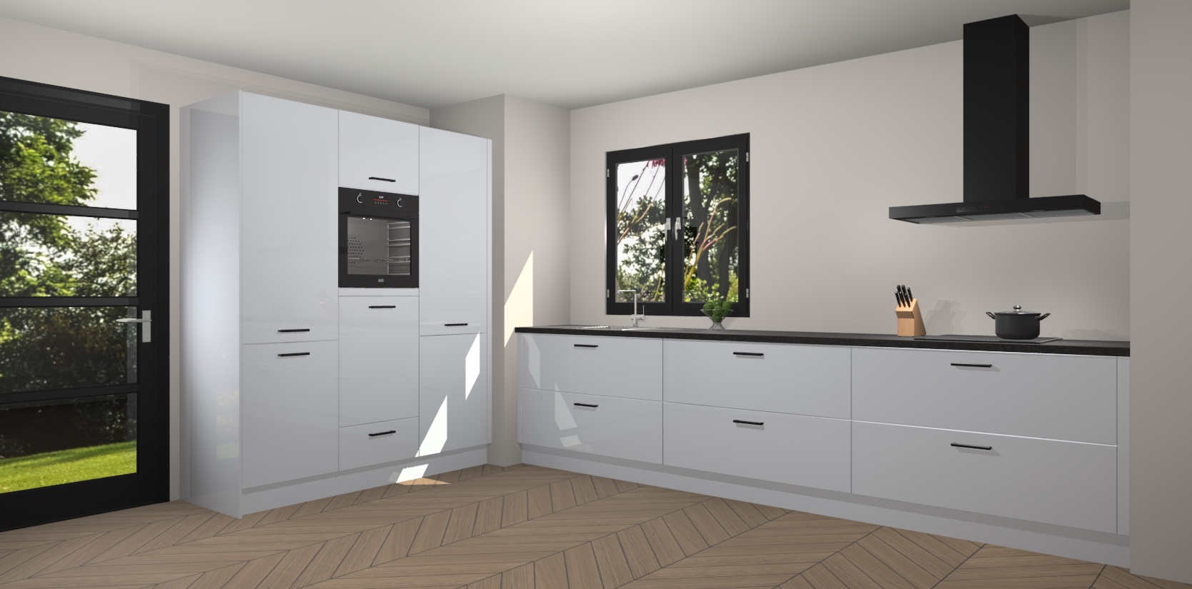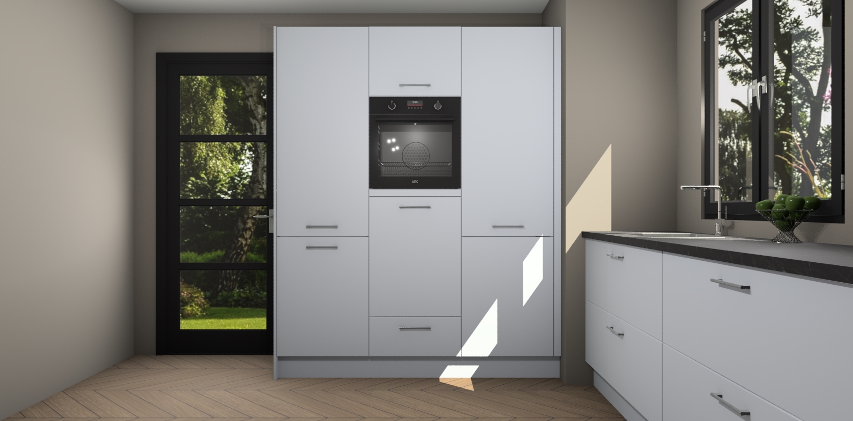 De softclose deuren openen en sluiten is ook heel eenvoudig - geniet van een moeiteloze keukenervaring, zelfs als er kinderen rondlopen. Voor extra gemak bij het plaatsen van uw bestelling bieden we ook een upgrade naar een kookplaat met geïntegreerde afzuiging.