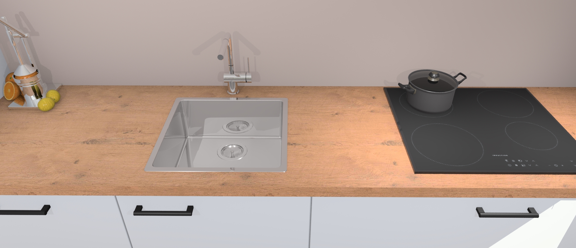 - Uitsparing van kookplaat, spoelbak en kraan dient u zelf te verzorgen.