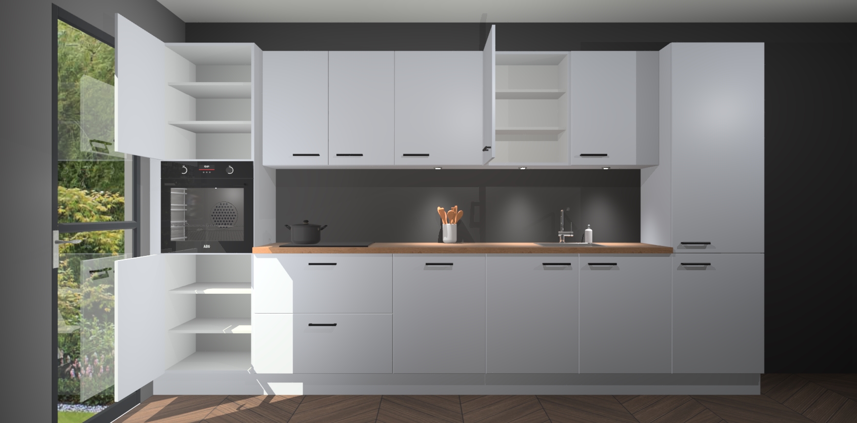 Dit is de perfecte keuken voor wie op zoek is naar een luxueuze stijl zonder zijn portemonnee te legen! Het chique ontwerp van de sneeuwwitte keuken Wels voegt dat vleugje verfijning toe aan elk huis. Het gemak van voorgemonteerde kasten bespaart u talloze uren tijd en energie, zodat u veel sneller dan verwacht kunt beginnen te genieten van uw prachtige nieuwe keuken. Bovendien bedraagt de levertijd slechts 7 weken.