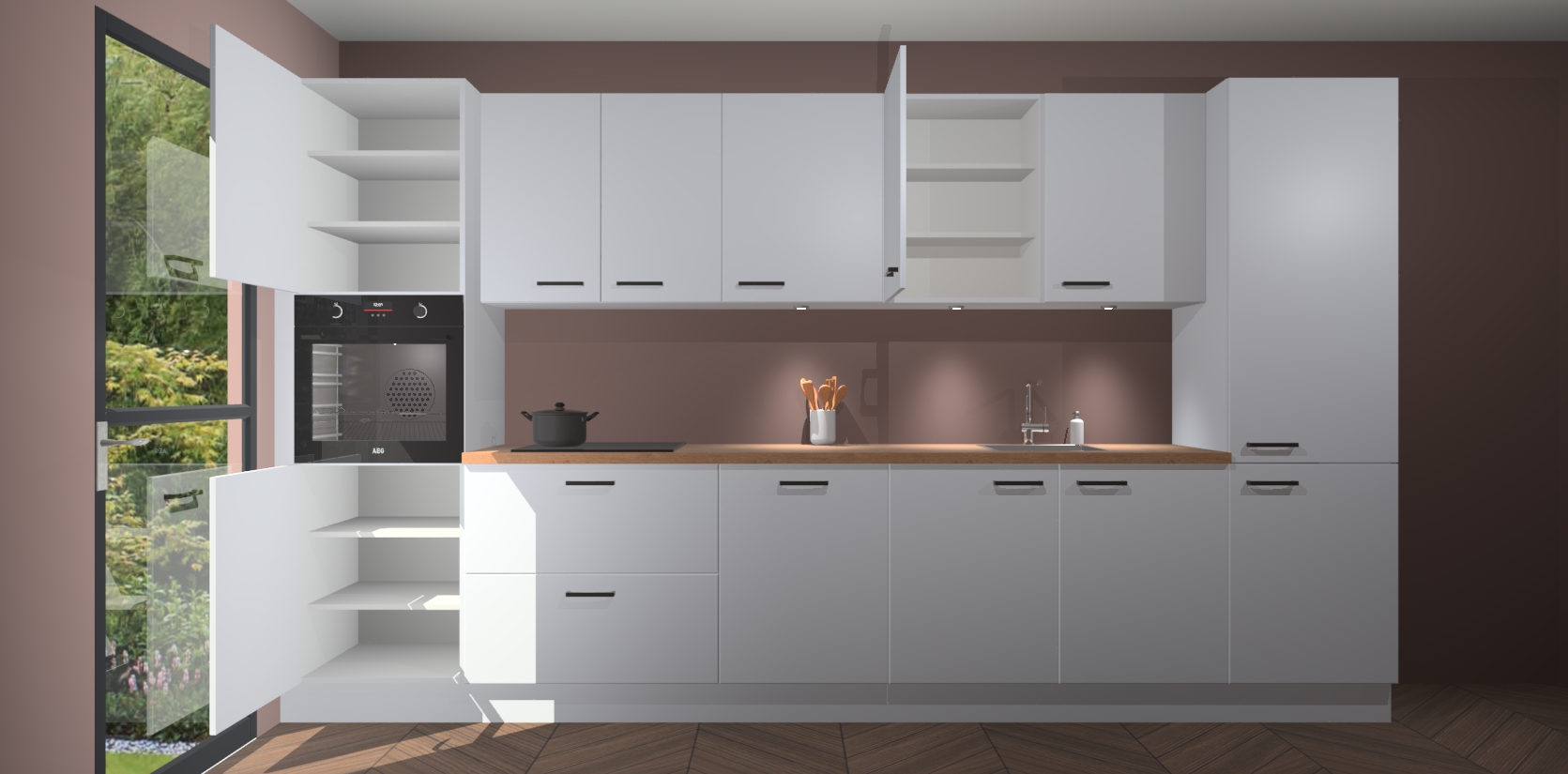 Dit is de perfecte keuken voor wie op zoek is naar een luxueuze stijl zonder zijn portemonnee te legen! Het chique ontwerp van de sneeuwwitte keuken Wels voegt dat vleugje verfijning toe aan elk huis. Het gemak van voorgemonteerde kasten bespaart u talloze uren tijd en energie, zodat u veel sneller dan verwacht kunt beginnen te genieten van uw prachtige nieuwe keuken. Bovendien bedraagt de levertijd slechts 7 weken.