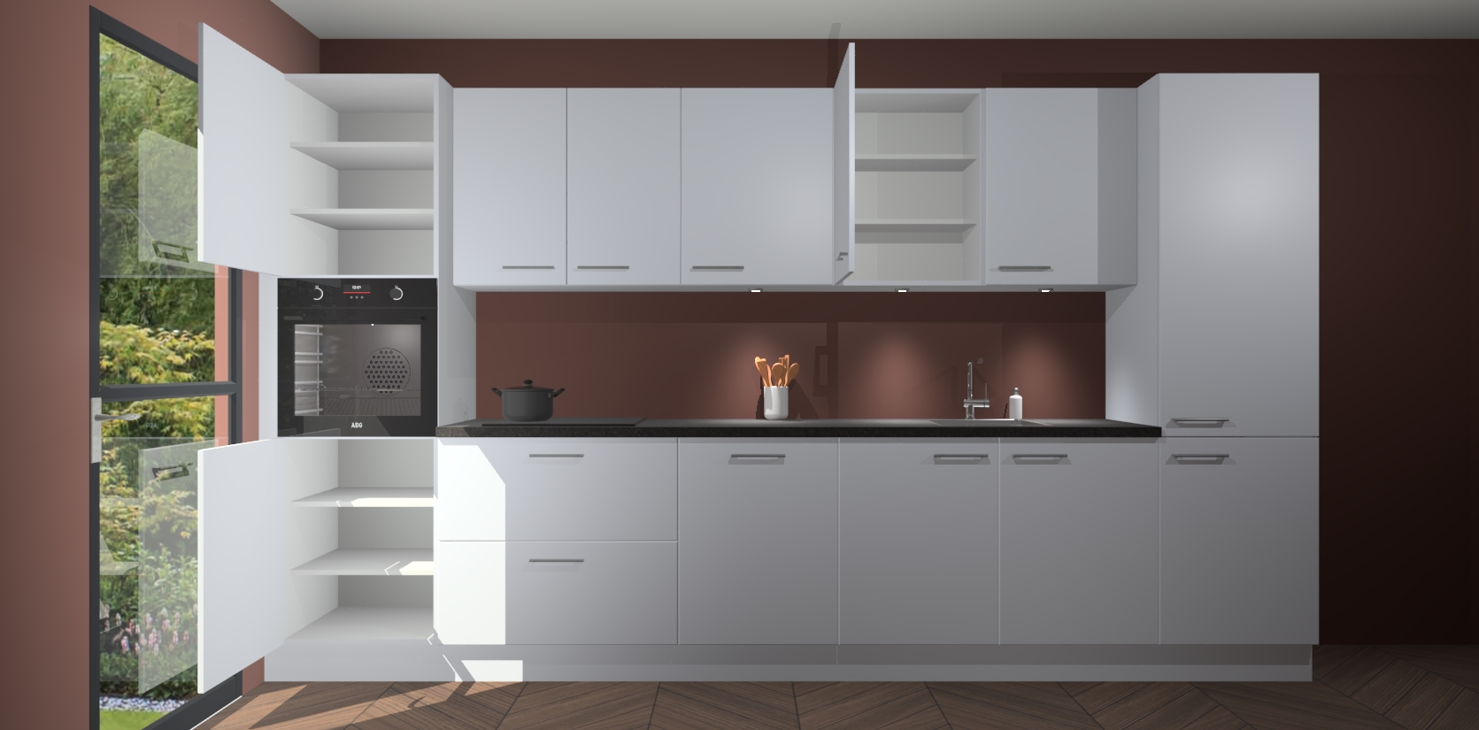 Dit is de perfecte keuken voor wie op zoek is naar een luxueuze stijl zonder zijn portemonnee te legen! Het chique ontwerp van de sneeuwwitte keuken Wels voegt dat vleugje verfijning toe aan elk huis. Het gemak van voorgemonteerde kasten bespaart u talloze uren tijd en energie, zodat u veel sneller dan verwacht kunt beginnen te genieten van uw prachtige nieuwe keuken. Bovendien bedraagt de levertijd slechts 7 weken.
