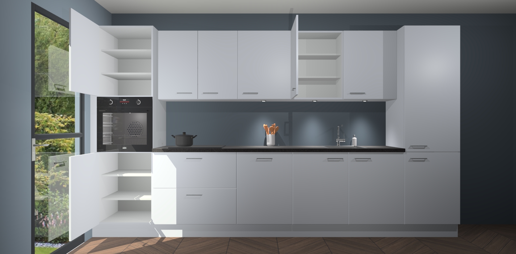 Dit is de perfecte keuken voor wie op zoek is naar een luxueuze stijl zonder zijn portemonnee te legen! Het chique ontwerp van de sneeuwwitte keuken Wels voegt dat vleugje verfijning toe aan elk huis. Het gemak van voorgemonteerde kasten bespaart u talloze uren tijd en energie, zodat u veel sneller dan verwacht kunt beginnen te genieten van uw prachtige nieuwe keuken. Bovendien bedraagt de levertijd slechts 7 weken.