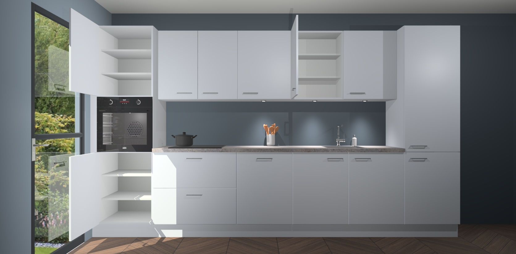 Dit is de perfecte keuken voor wie op zoek is naar een luxueuze stijl zonder zijn portemonnee te legen! Het chique ontwerp van de sneeuwwitte keuken Wels voegt dat vleugje verfijning toe aan elk huis. Het gemak van voorgemonteerde kasten bespaart u talloze uren tijd en energie, zodat u veel sneller dan verwacht kunt beginnen te genieten van uw prachtige nieuwe keuken. Bovendien bedraagt de levertijd slechts 7 weken.