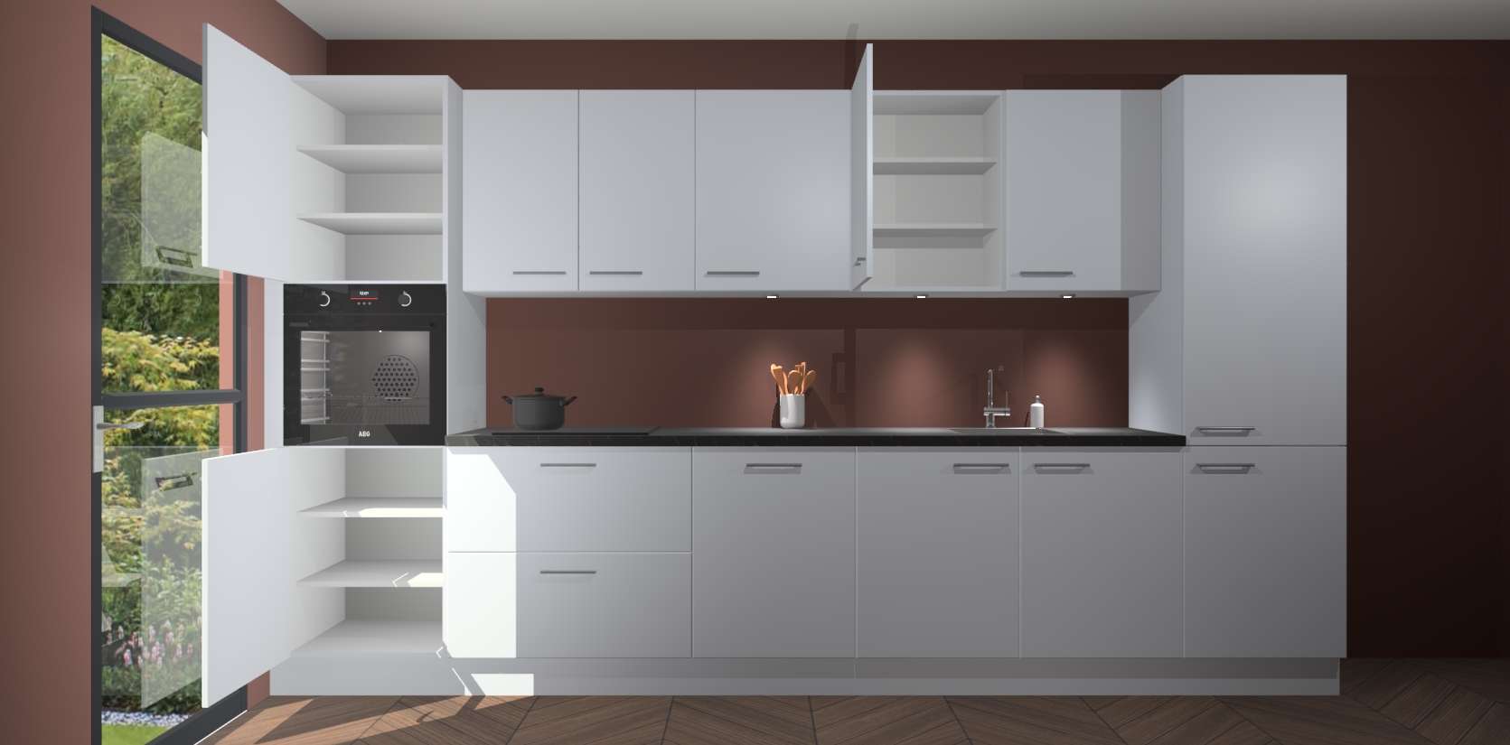 Dit is de perfecte keuken voor wie op zoek is naar een luxueuze stijl zonder zijn portemonnee te legen! Het chique ontwerp van de sneeuwwitte keuken Wels voegt dat vleugje verfijning toe aan elk huis. Het gemak van voorgemonteerde kasten bespaart u talloze uren tijd en energie, zodat u veel sneller dan verwacht kunt beginnen te genieten van uw prachtige nieuwe keuken. Bovendien bedraagt de levertijd slechts 7 weken.