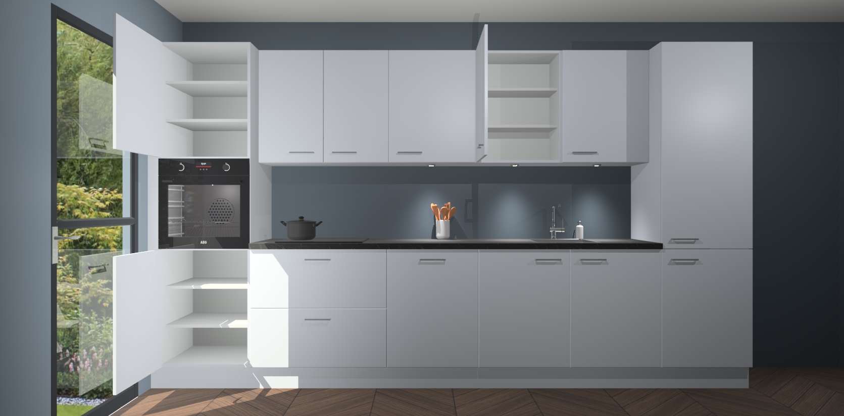 Dit is de perfecte keuken voor wie op zoek is naar een luxueuze stijl zonder zijn portemonnee te legen! Het chique ontwerp van de sneeuwwitte keuken Wels voegt dat vleugje verfijning toe aan elk huis. Het gemak van voorgemonteerde kasten bespaart u talloze uren tijd en energie, zodat u veel sneller dan verwacht kunt beginnen te genieten van uw prachtige nieuwe keuken. Bovendien bedraagt de levertijd slechts 7 weken.