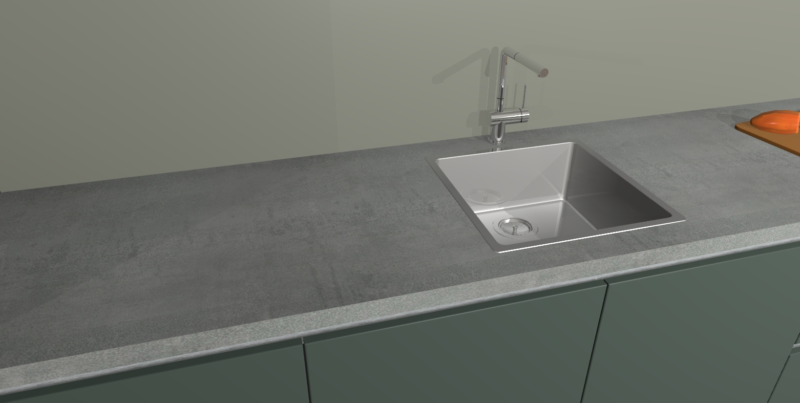- De spoelbak is nog niet in gevreesd. Dit dient tijdens het werk gedaan te worden