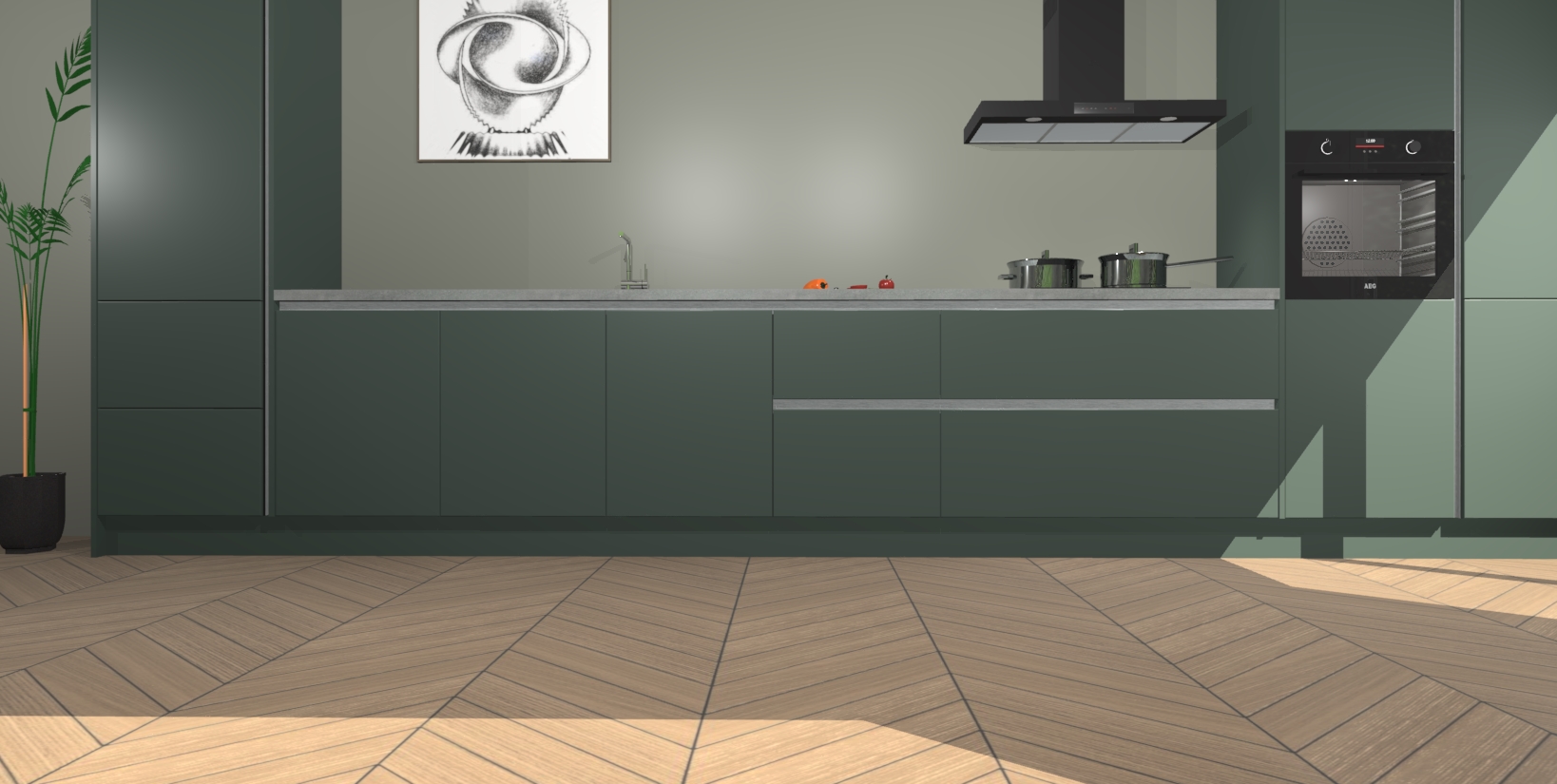 Inclusief plinten, stelpoten en werkblad