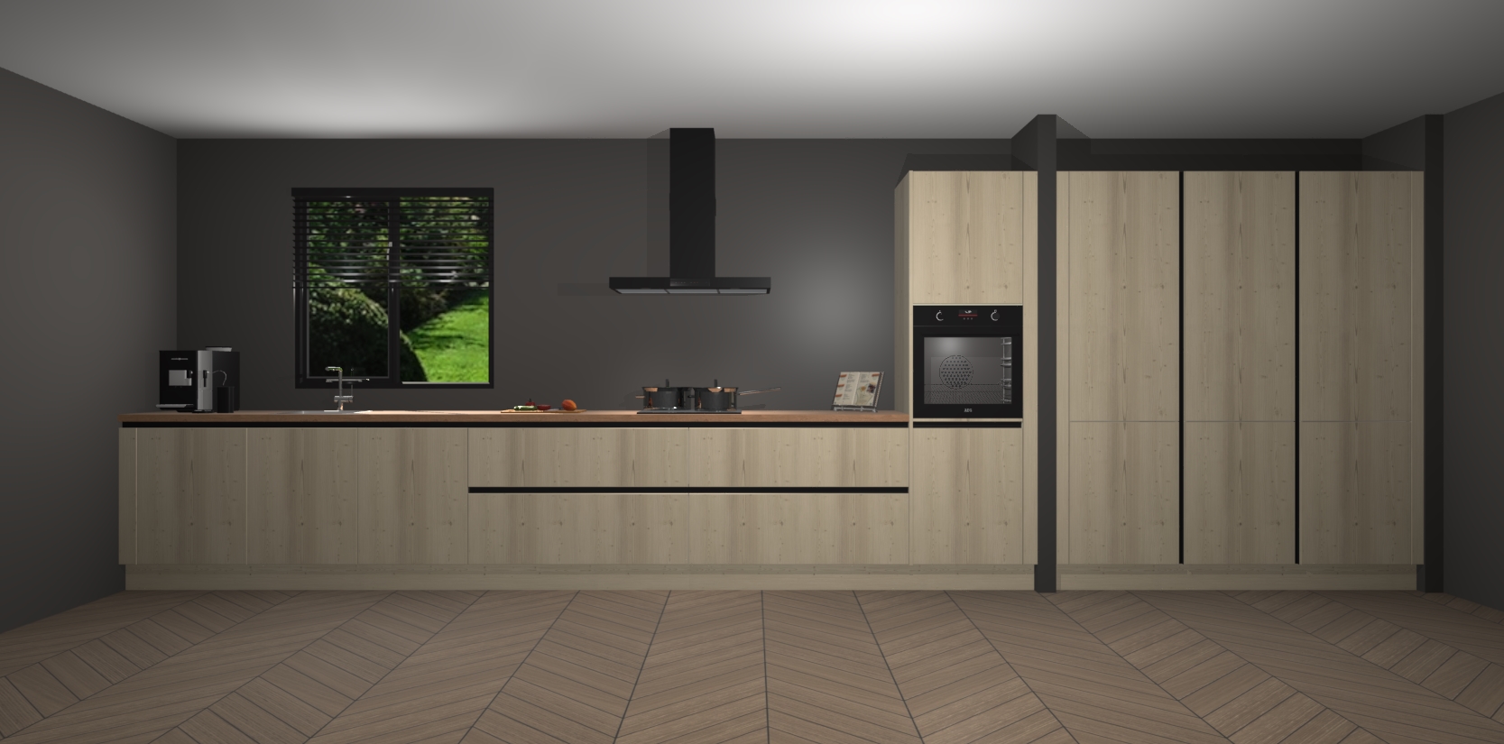 Een stijlvolle en praktische keuken als deze mag gezien worden. Dankzij de prachtige matte afwerking wordt de keuken gemakkelijk het middelpunt van uw huis - hij ziet er geweldig uit onder allerlei lichtomstandigheden, van dag tot nacht!