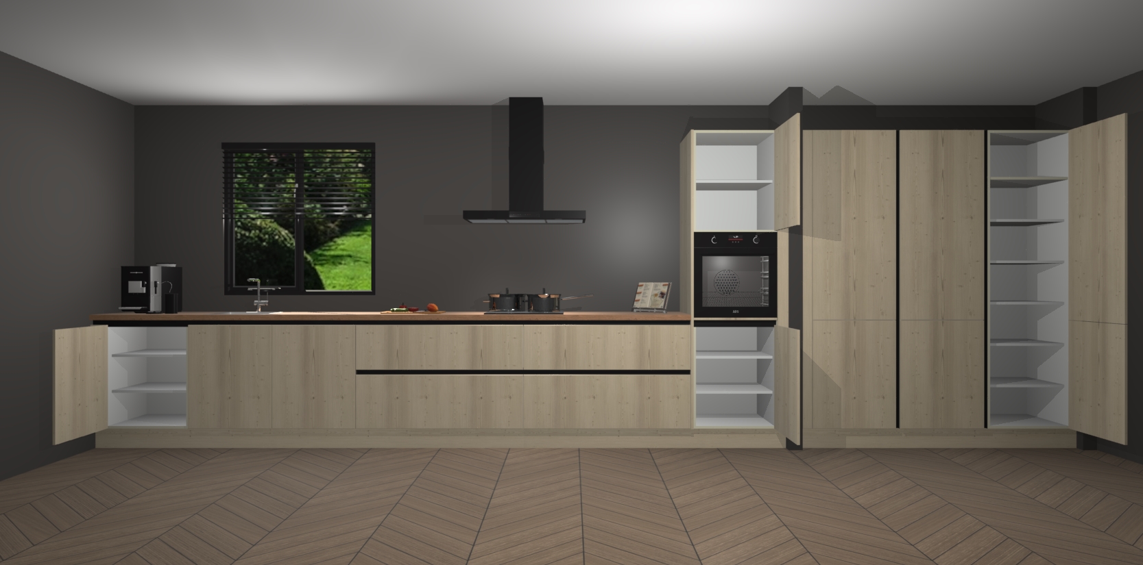 Dankzij de afwerking past de Vuren greeploze keuken Angola naadloos in elk huis of appartement. De soft-close deuren geven je extra gemoedsrust, want ze sluiten vanzelf en slaan nooit dicht! En alsof dat nog niet genoeg is, worden deze kasten volledig gemonteerd geleverd, dus maak je geen zorgen over eventuele installatieproblemen.