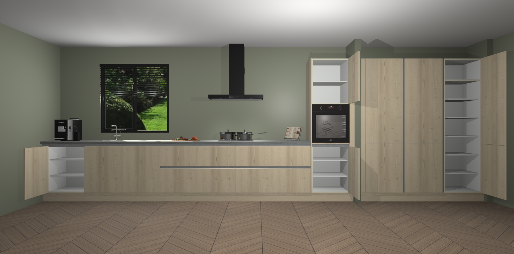 Dankzij de afwerking past de Vuren greeploze keuken Angola naadloos in elk huis of appartement. De soft-close deuren geven je extra gemoedsrust, want ze sluiten vanzelf en slaan nooit dicht! En alsof dat nog niet genoeg is, worden deze kasten volledig gemonteerd geleverd, dus maak je geen zorgen over eventuele installatieproblemen.