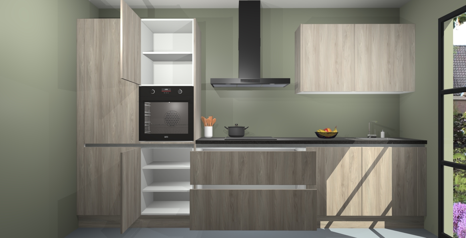 Maak kennis met de geweldige Vuren greeploze keuken Athene! U zal niet kunnen weerstaan aan zijn strakke moderne design - hoewel het een meer eigentijdse look is, is de houtlook perfect om warmte uit te stralen in uw hele huis. U zult zeker veel complimenten krijgen met dit meubel - u vrienden en familie zullen versteld staan van het wow-effect!