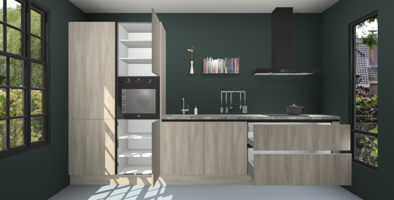 Droomt u van een moderne, tijdloze keuken in uw huis? Zoek dan niet verder! Onze nieuwe Vuren greeploze keuken Brussel is de perfecte oplossing om uw ruimte een upgrade te geven. Hij bevat 5 geavanceerde inbouwapparaten waarmee u sneller voedsel kunt bereiden dan ooit tevoren! Een oven, inductiekookplaat, afzuigkap, vaatwasser en koelkast zijn allemaal samengevoegd voor maximaal gemak.