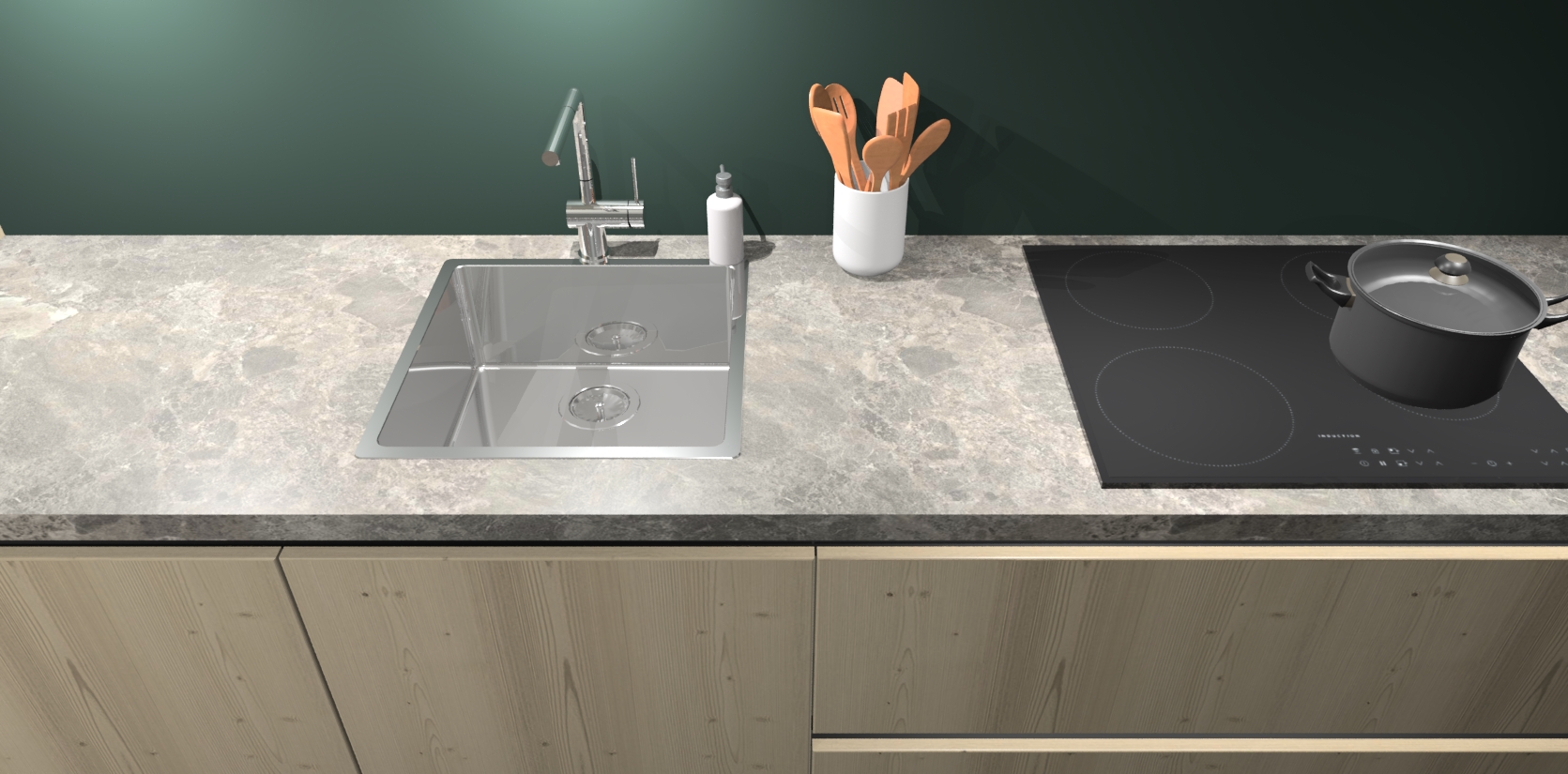 - Uitsparing van kookplaat, spoelbak en kraan dient u zelf te verzorgen.