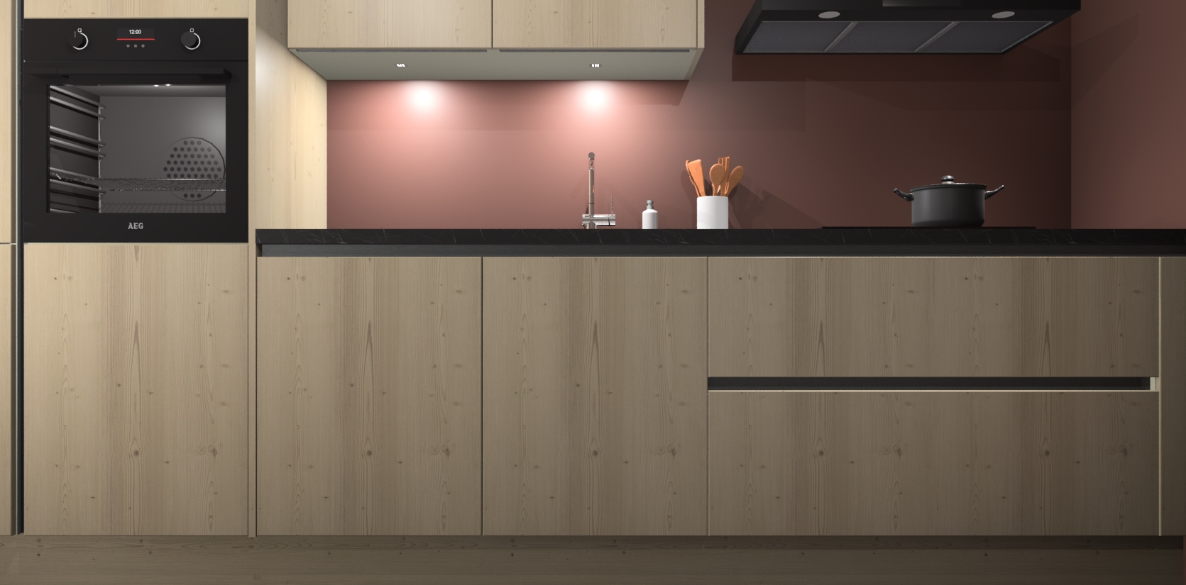 Inclusief plinten, stelpoten en werkblad