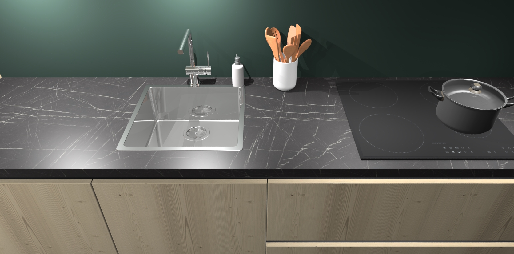 - Bij een hoekwerkblad zijn de hoeken in gevreesd en op maat gemaakt