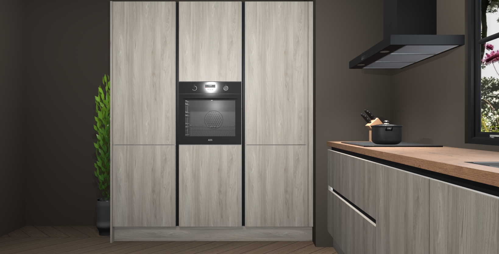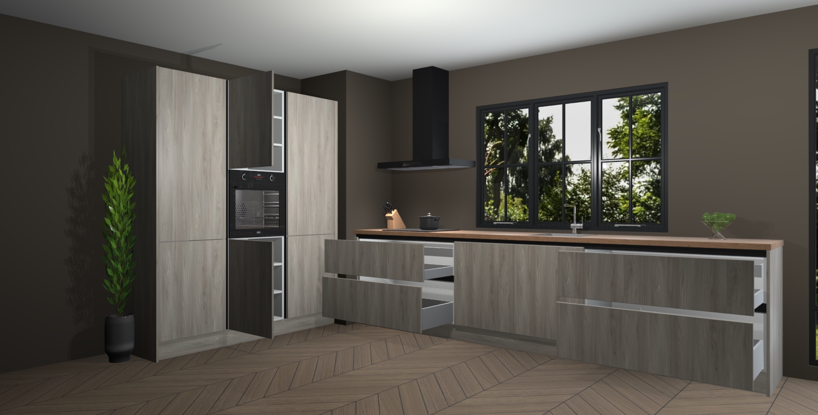 De softclose deuren openen en sluiten is ook heel eenvoudig - geniet van een moeiteloze keukenervaring, zelfs als er kinderen rondlopen. Voor extra gemak bij het plaatsen van uw bestelling bieden we ook een upgrade naar een kookplaat met geïntegreerde afzuiging.