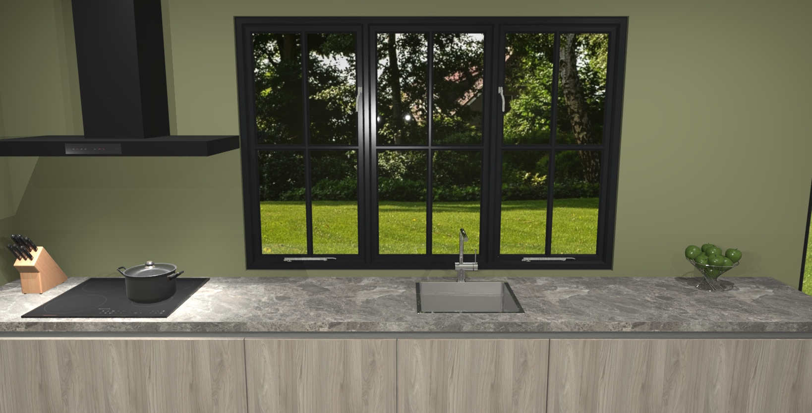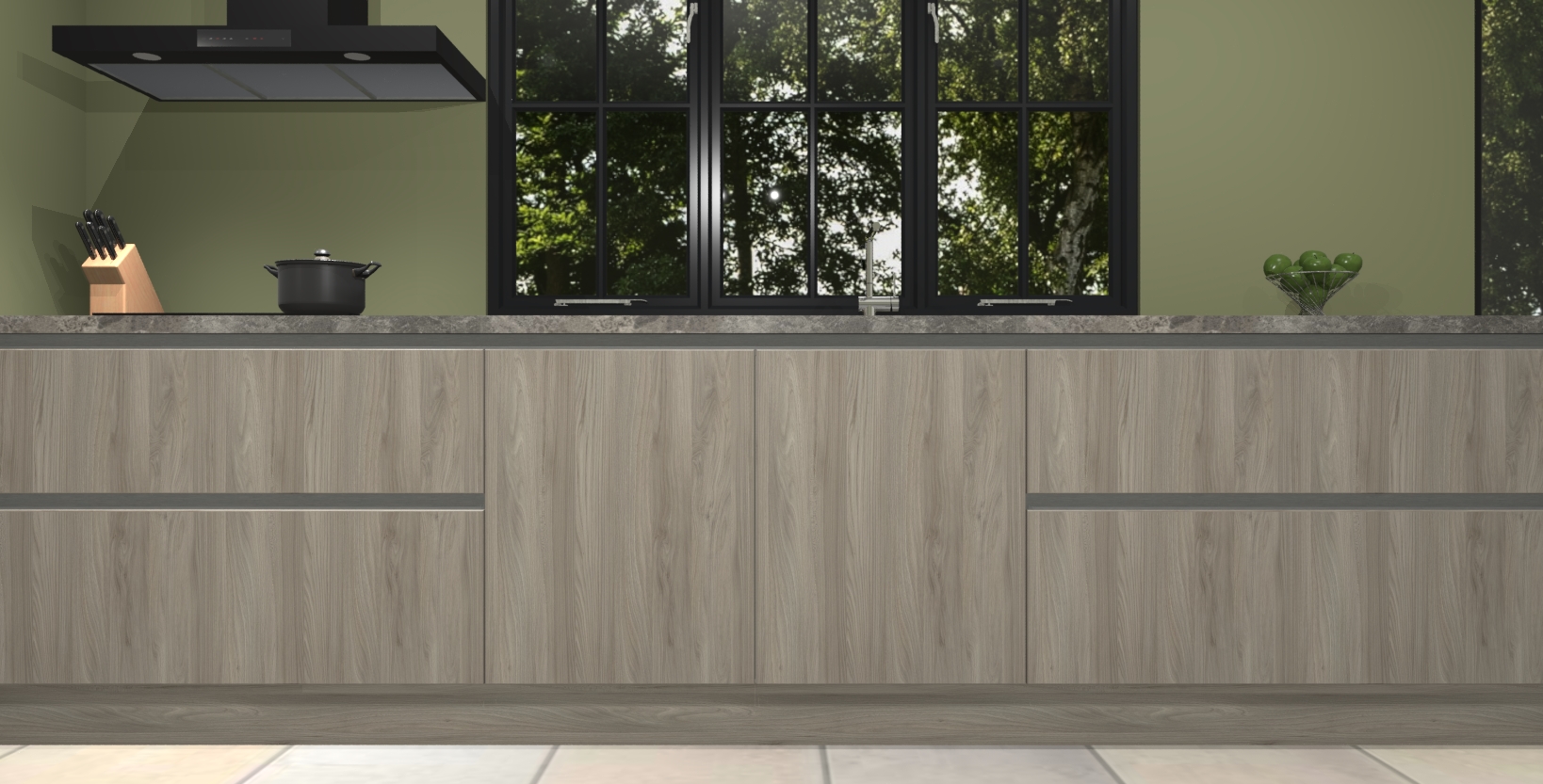 De softclose deuren openen en sluiten is ook heel eenvoudig - geniet van een moeiteloze keukenervaring, zelfs als er kinderen rondlopen. Voor extra gemak bij het plaatsen van uw bestelling bieden we ook een upgrade naar een kookplaat met geïntegreerde afzuiging.