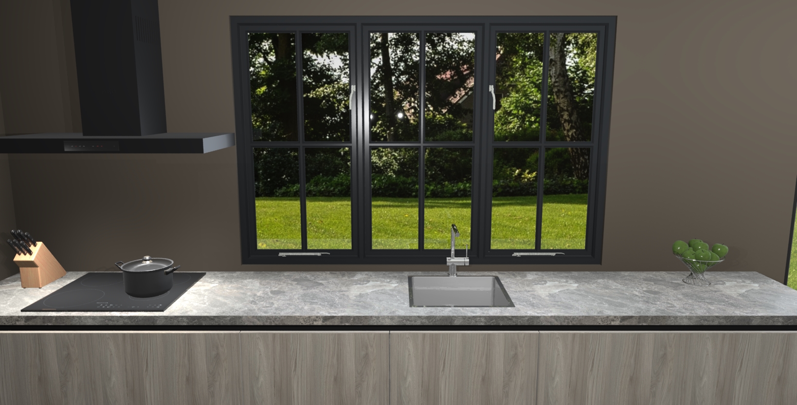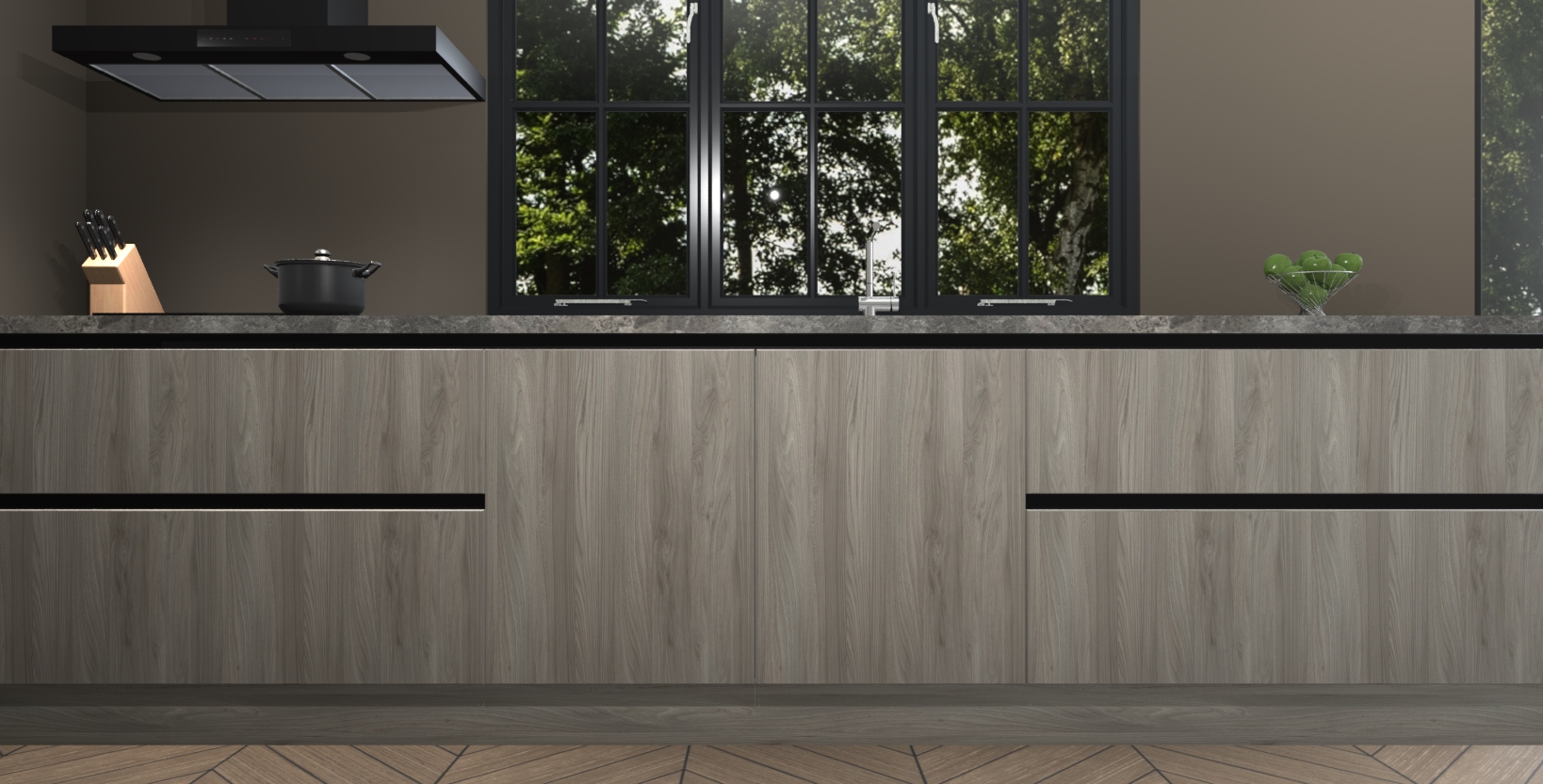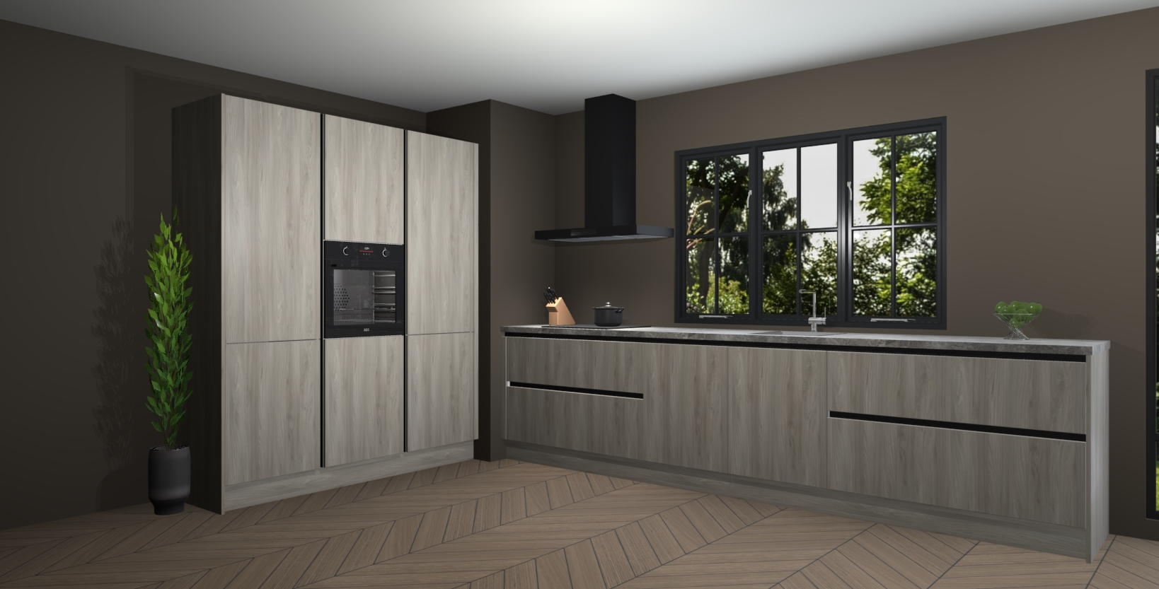 De softclose deuren openen en sluiten is ook heel eenvoudig - geniet van een moeiteloze keukenervaring, zelfs als er kinderen rondlopen. Voor extra gemak bij het plaatsen van uw bestelling bieden we ook een upgrade naar een kookplaat met geïntegreerde afzuiging.