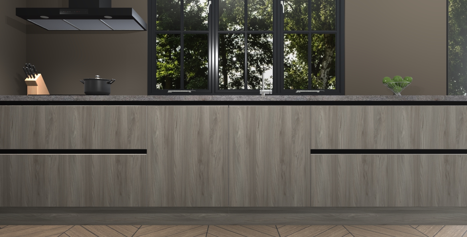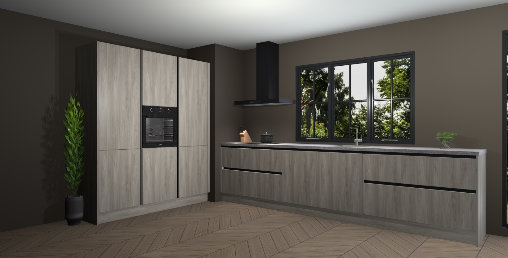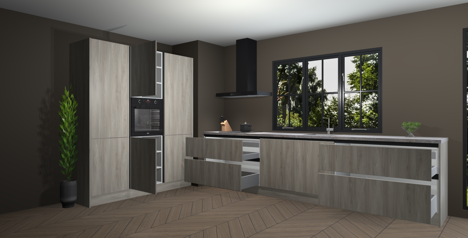 De softclose deuren openen en sluiten is ook heel eenvoudig - geniet van een moeiteloze keukenervaring, zelfs als er kinderen rondlopen. Voor extra gemak bij het plaatsen van uw bestelling bieden we ook een upgrade naar een kookplaat met geïntegreerde afzuiging.