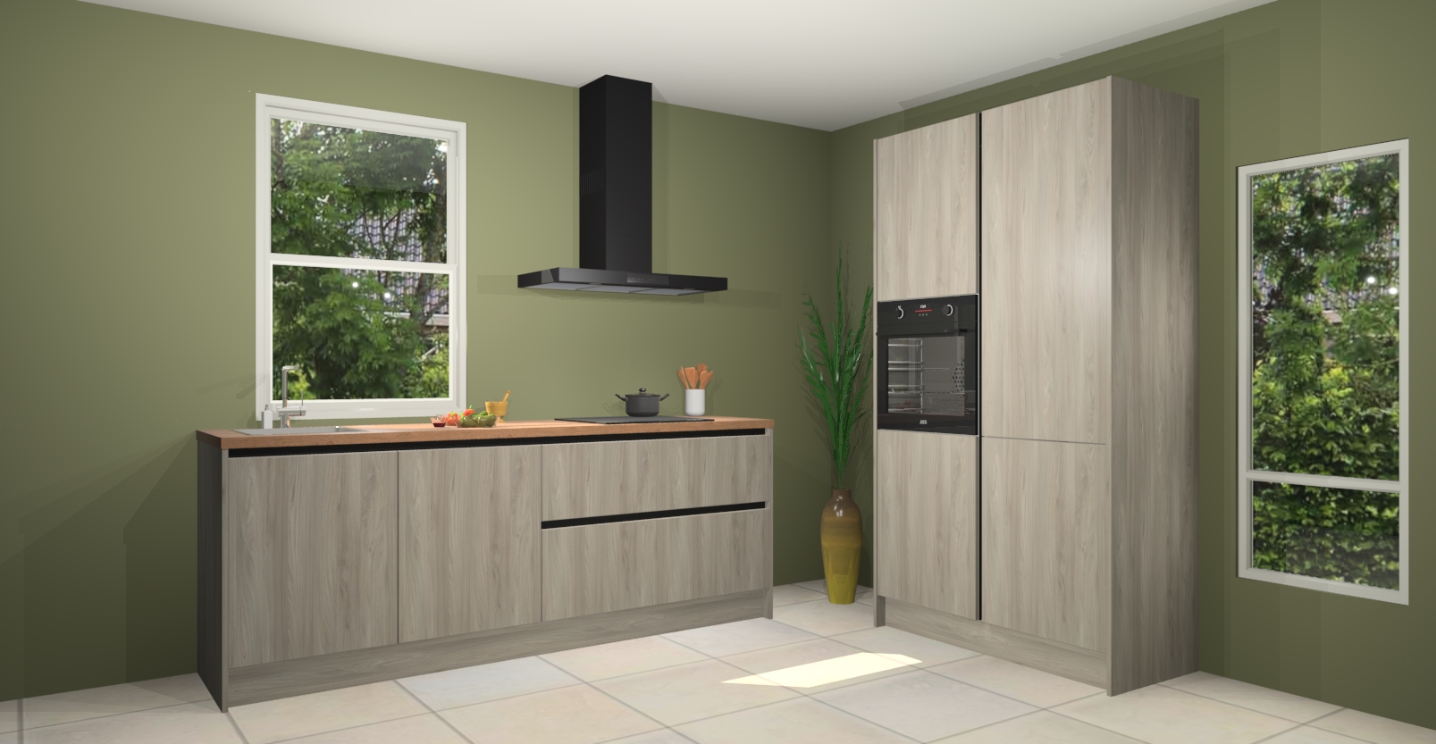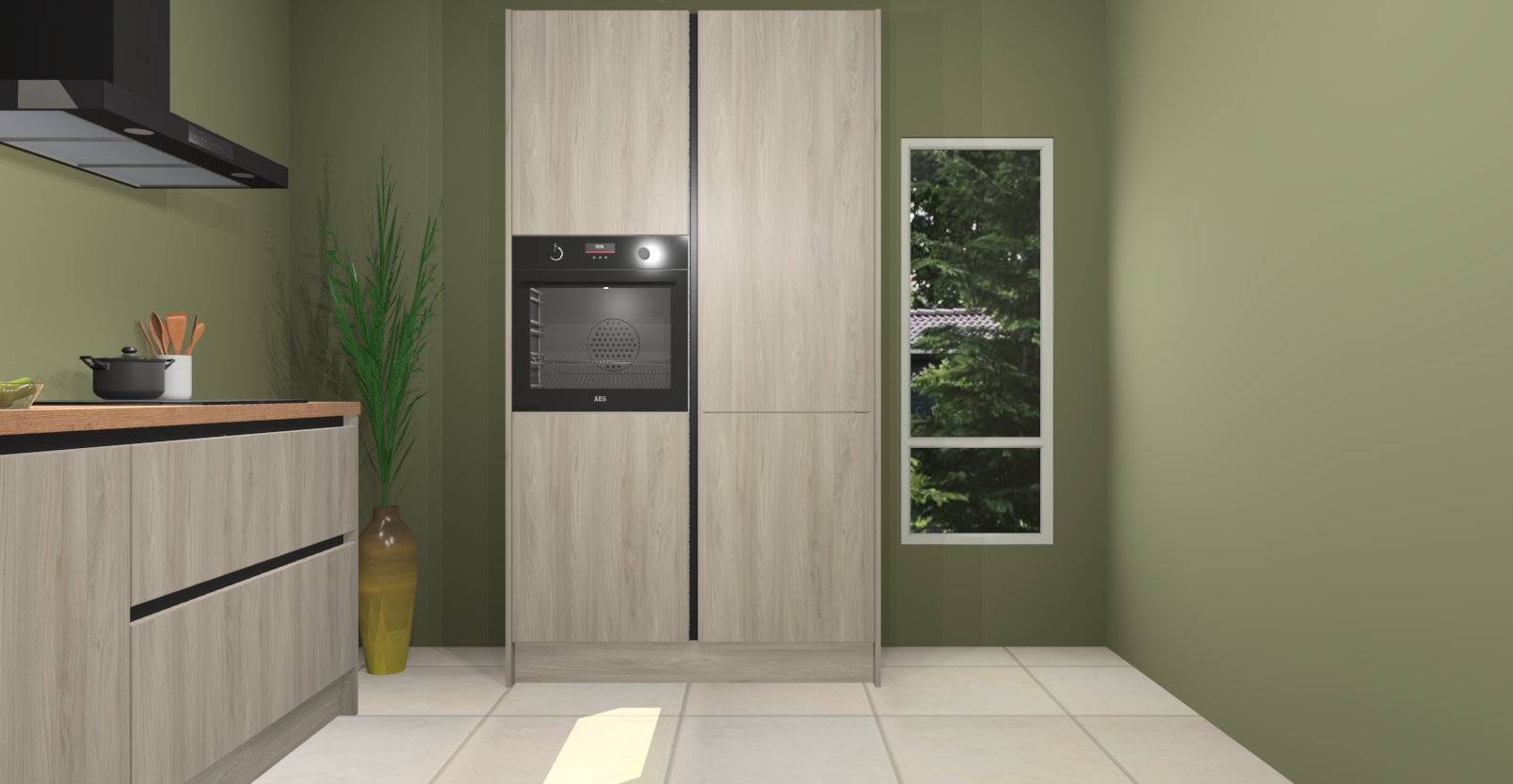 De Vuren greeploze keuken Monaco heeft voldoende opbergruimte om uw keukenbenodigdheden georganiseerd en netjes te houden. Geniet van het gemak van de soft-close deuren, die deze stijlvolle look perfect afmaken. Maar dat is nog niet alles. Met de Vuren greeploze keuken Monaco krijgt u maar liefst 5 ingebouwde apparaten: een oven, inductiekookplaat, afzuigkap, vaatwasser en koelkast. Deze kunnen gemakkelijk worden geüpgraded naar AEG als ze besteld zijn.